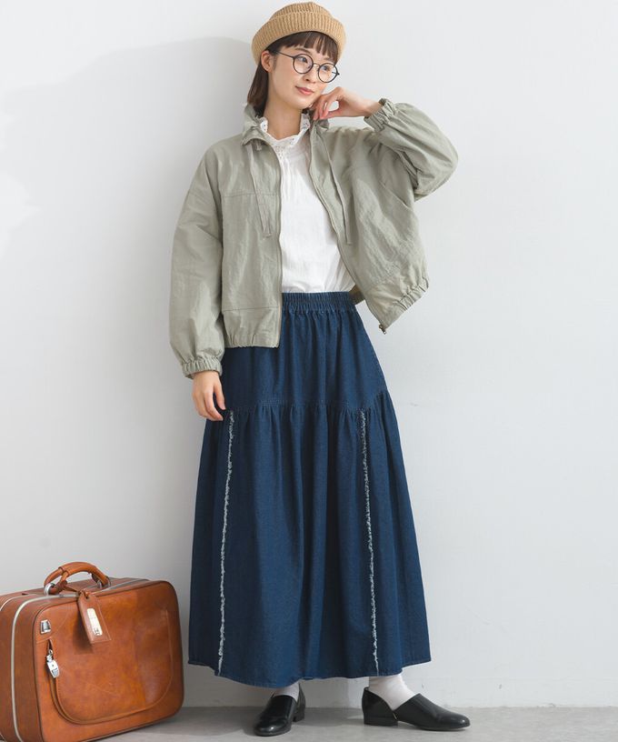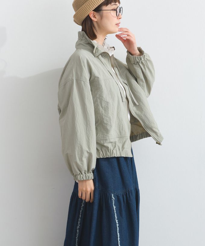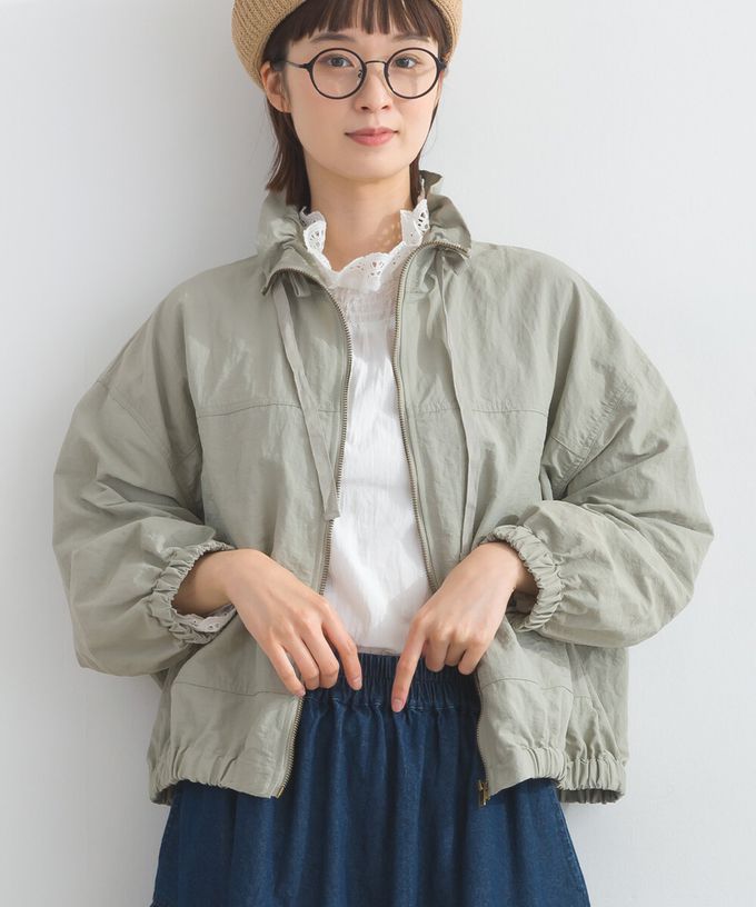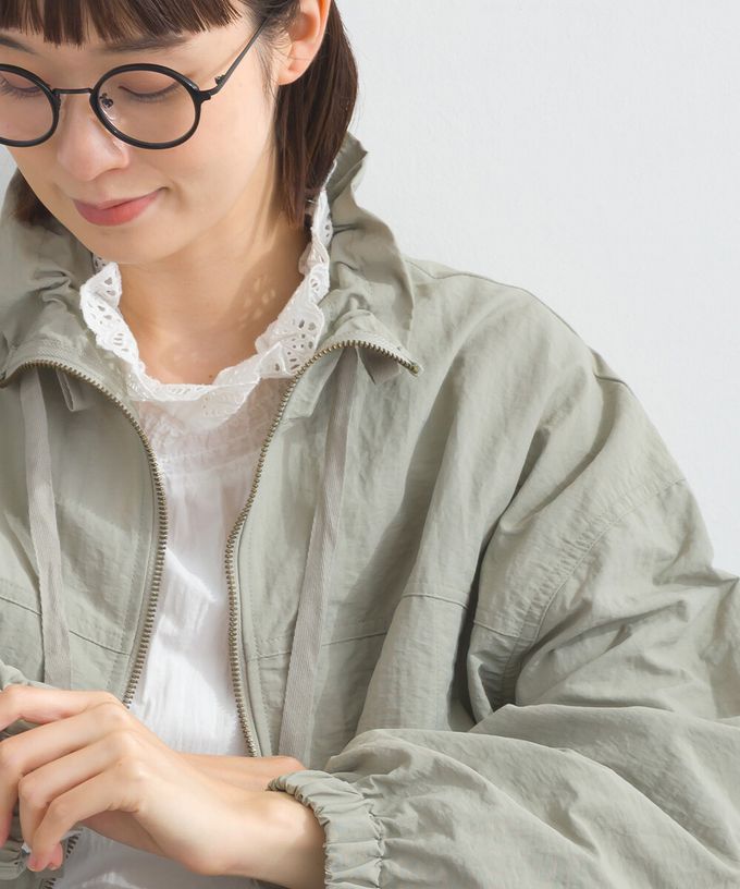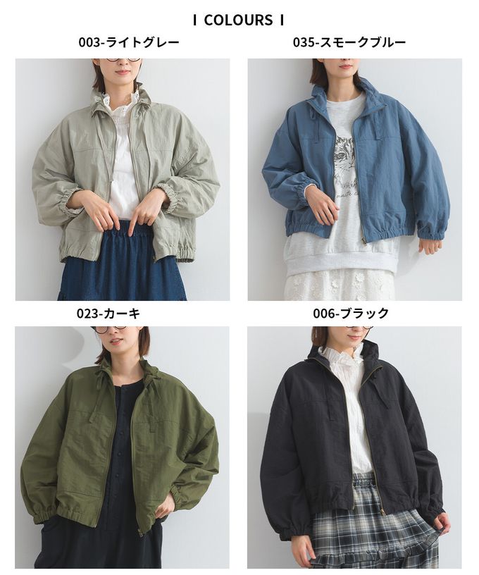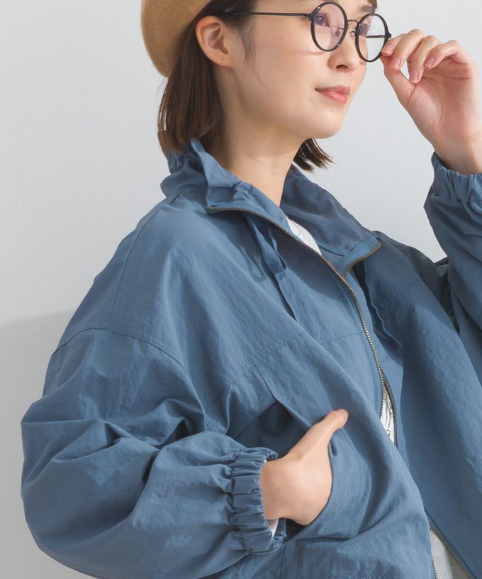 日本 Lupilien - 輕盈俏麗特色領尼龍短版薄外套-煙燻藍