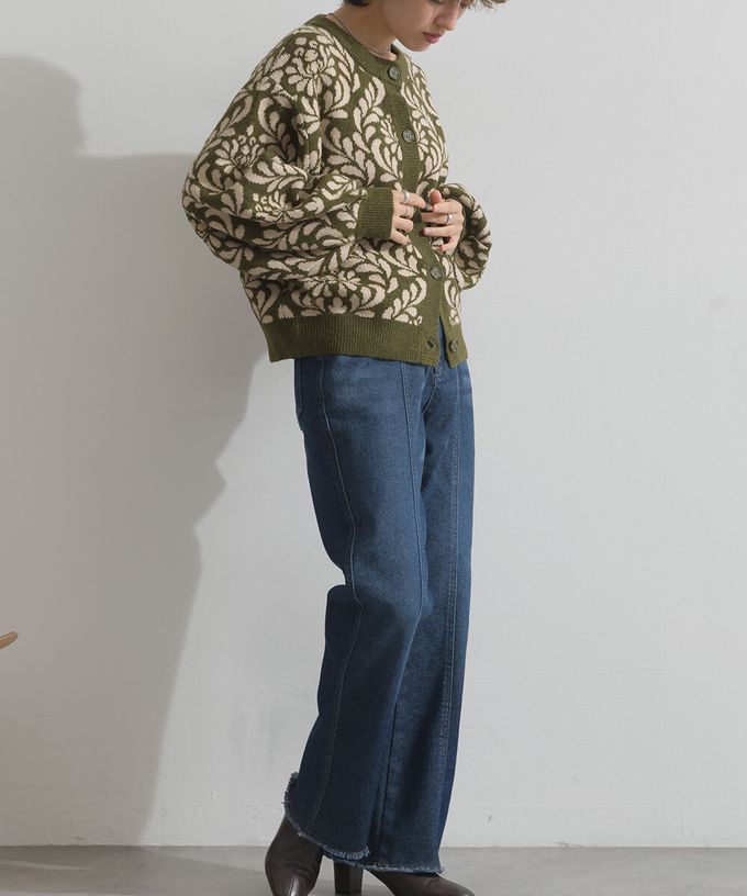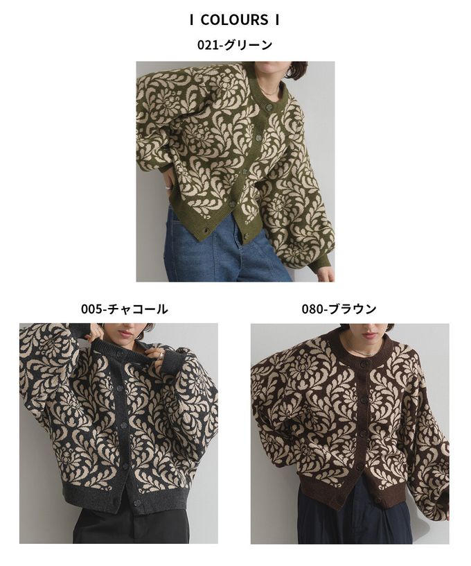 日本 Lupilien - 盛開花卉針織寬袖開襟衫/外套-橄欖綠