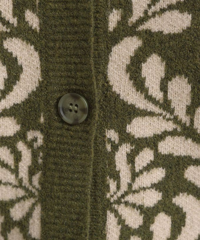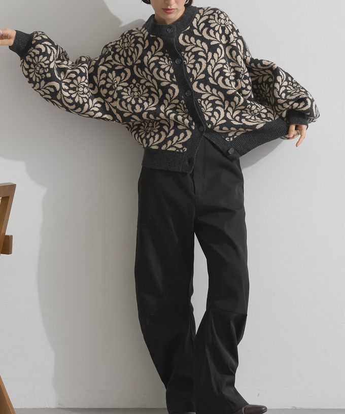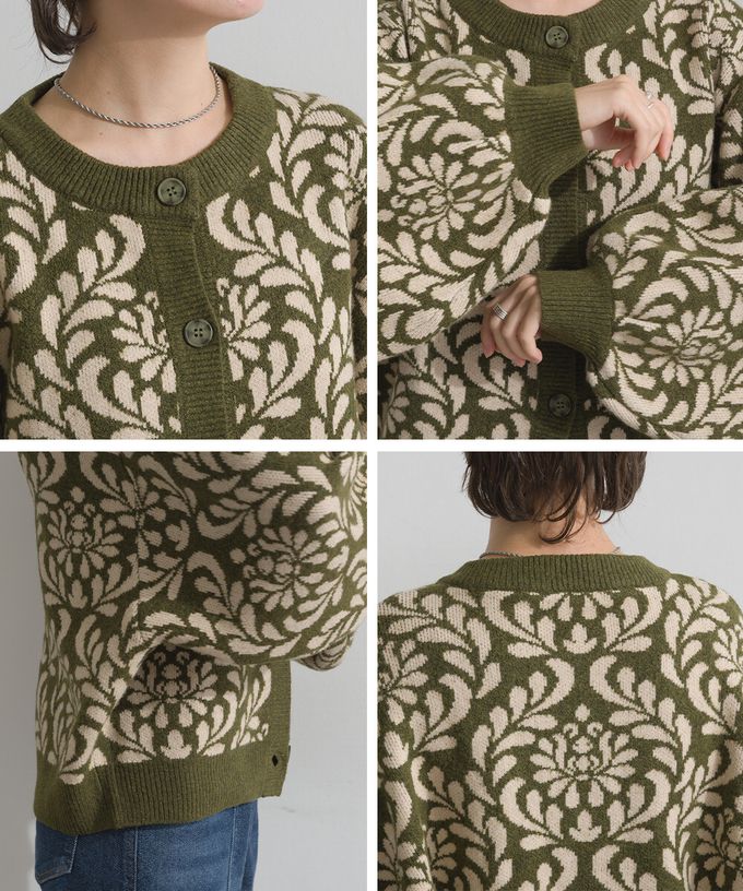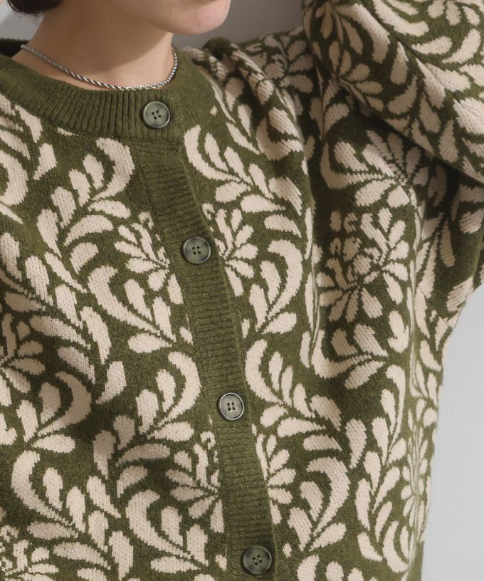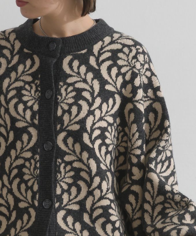 日本 Lupilien - 盛開花卉針織寬袖開襟衫/外套-咖啡