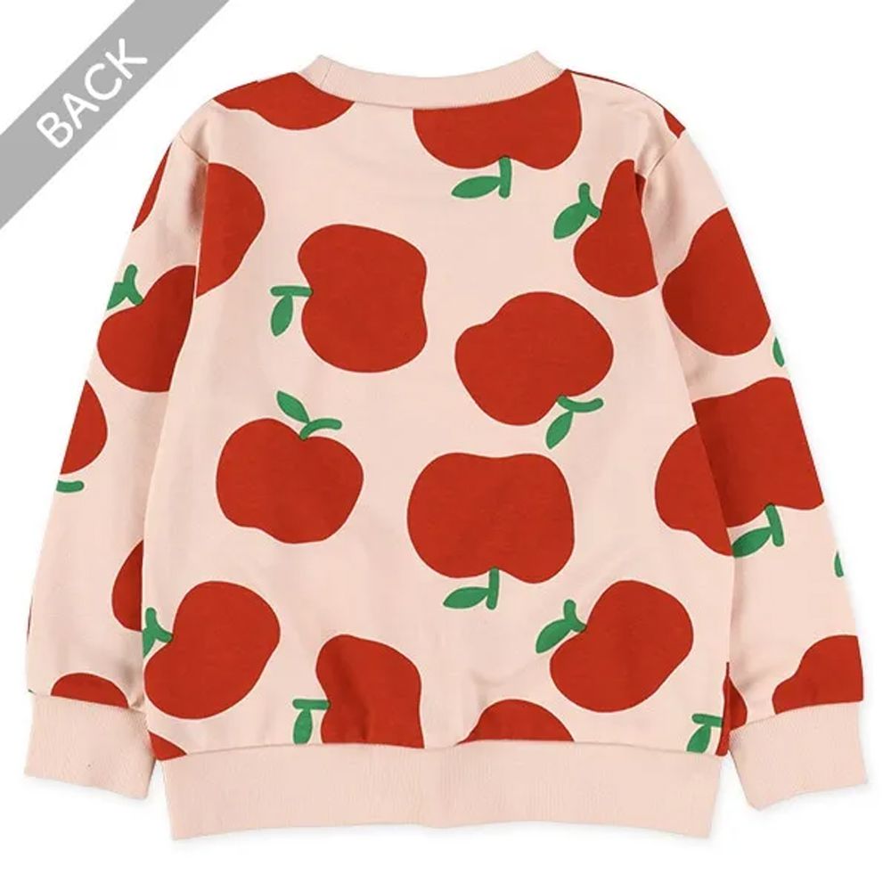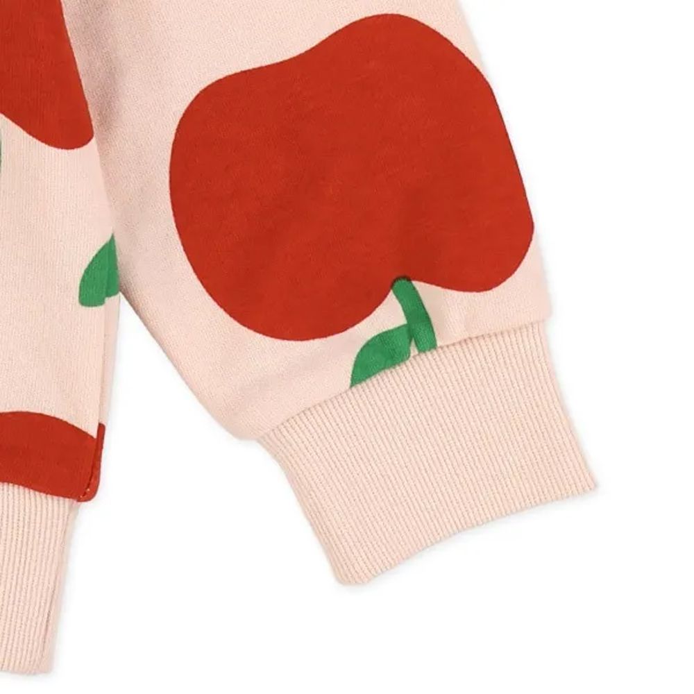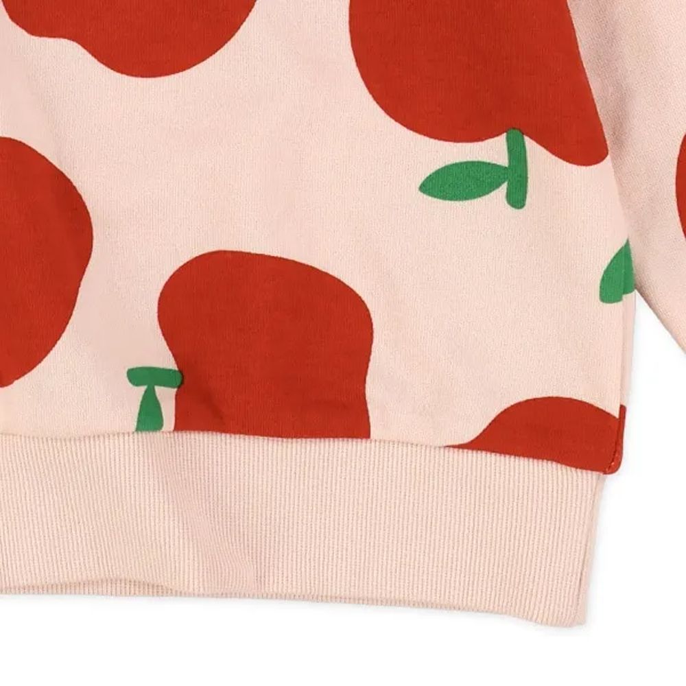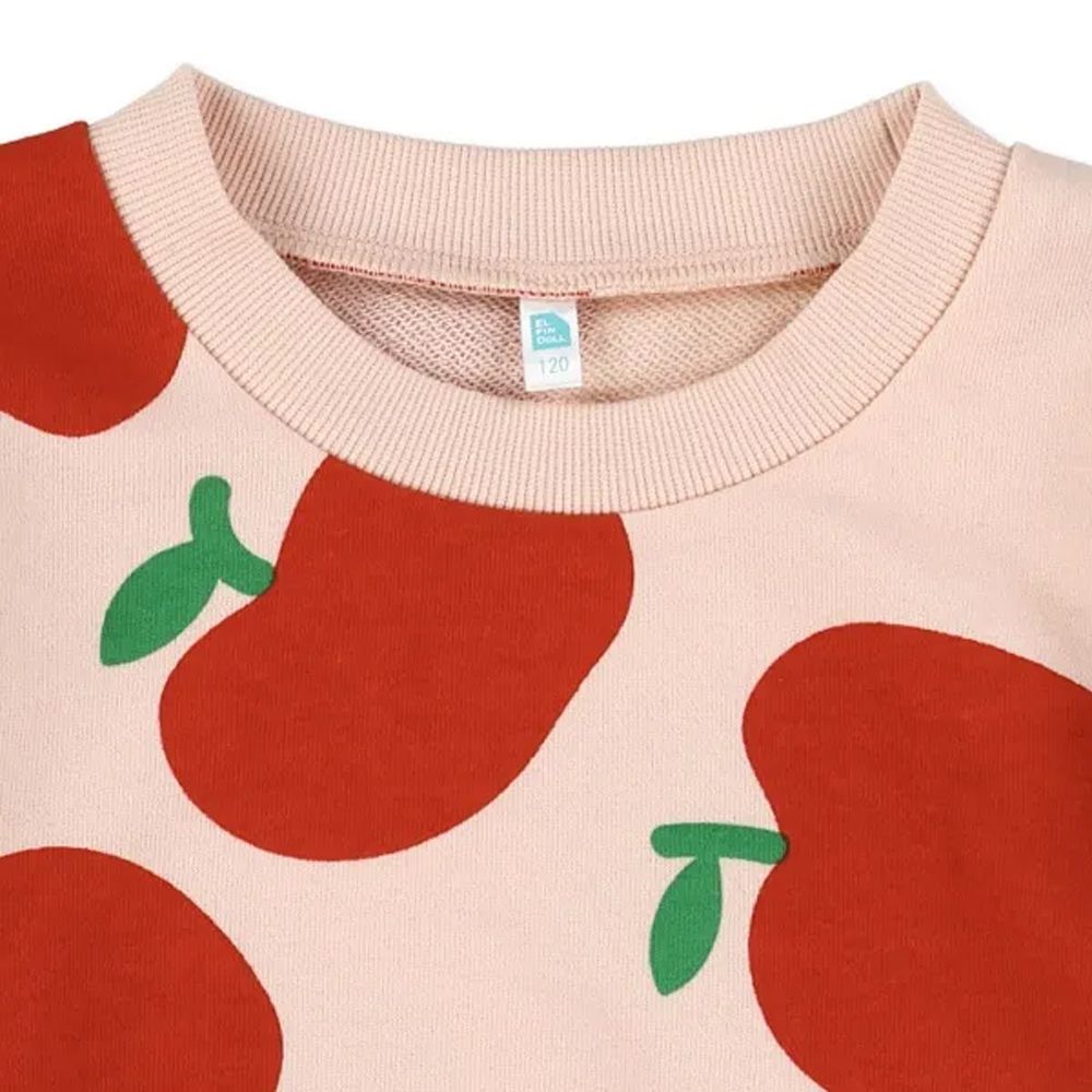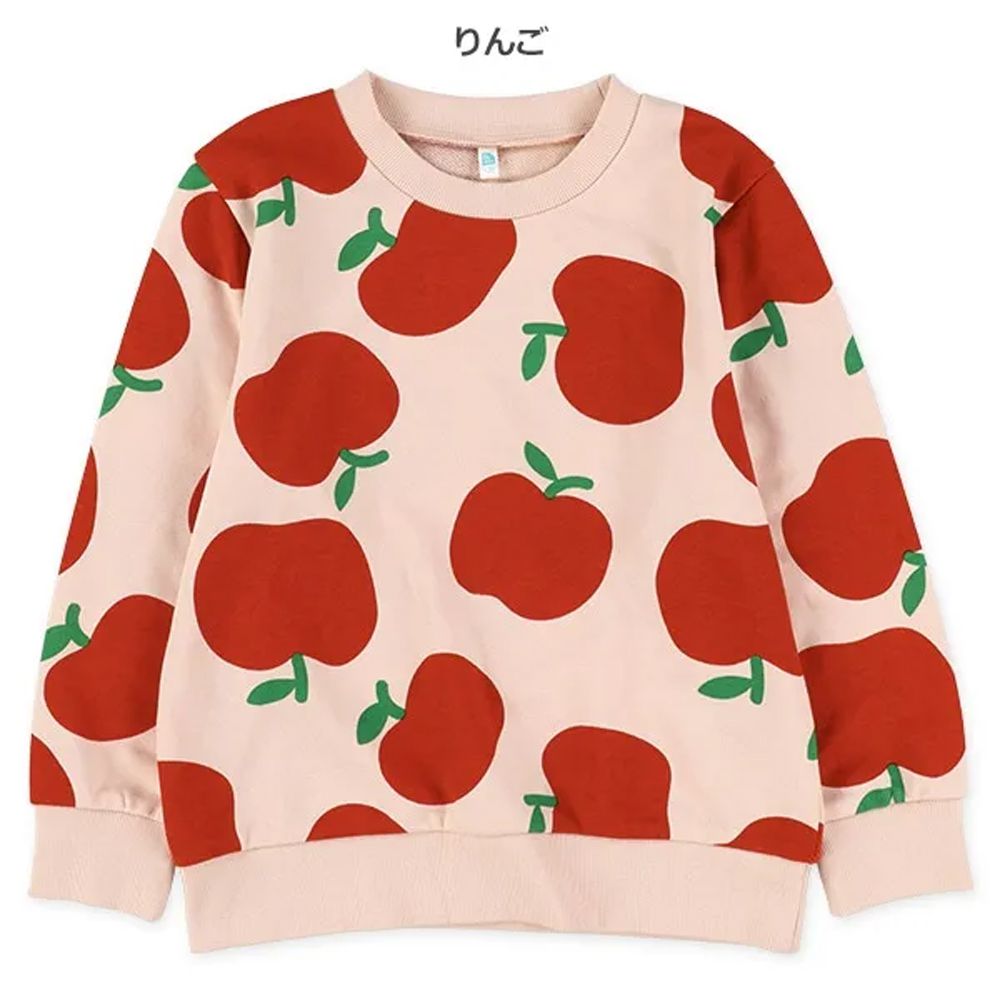 日本西松屋 - 可愛水果印花縮口長袖上衣-蘋果-粉紅