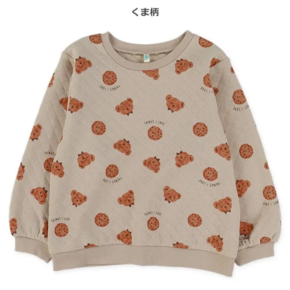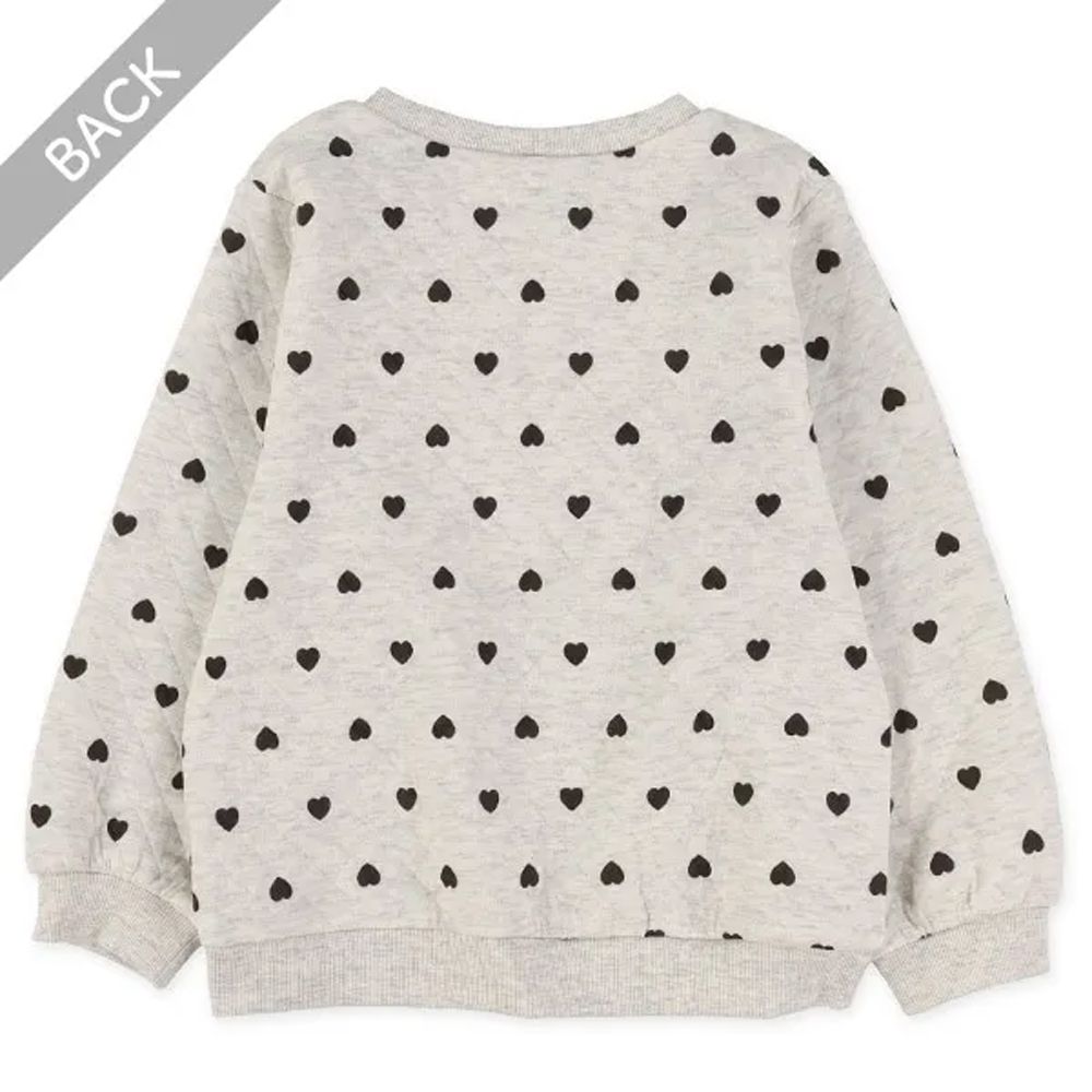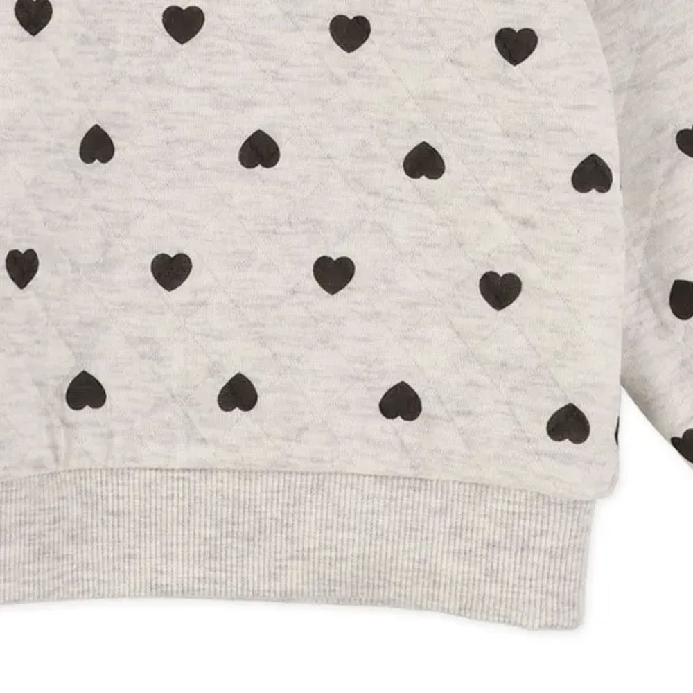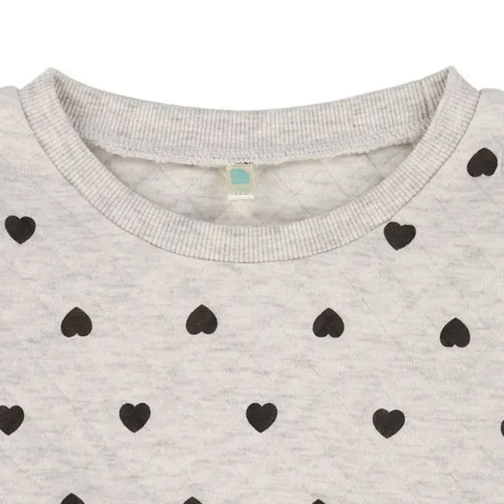 日本西松屋 - 菱格絎縫印花薄長袖上衣-愛心-灰