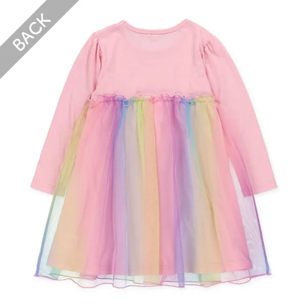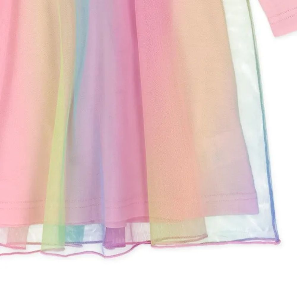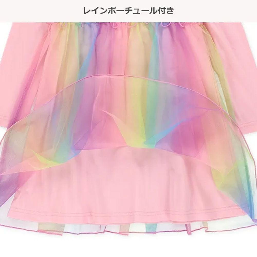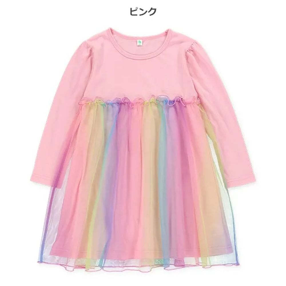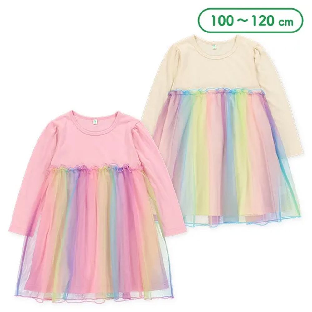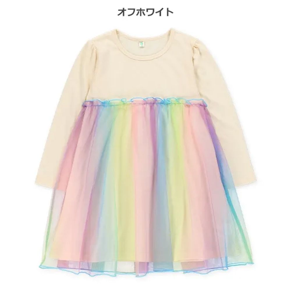日本西松屋 - 夢幻彩虹薄紗長袖洋裝-米白