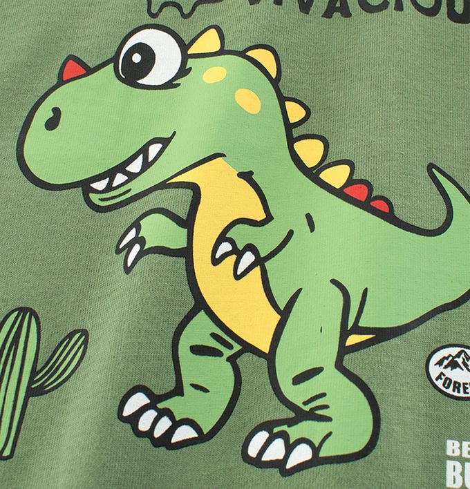 27KIDS - 純棉長袖上衣-恐龍驚驚-黃色
