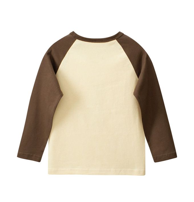 純棉長袖上衣-恐龍派對-米杏/咖啡