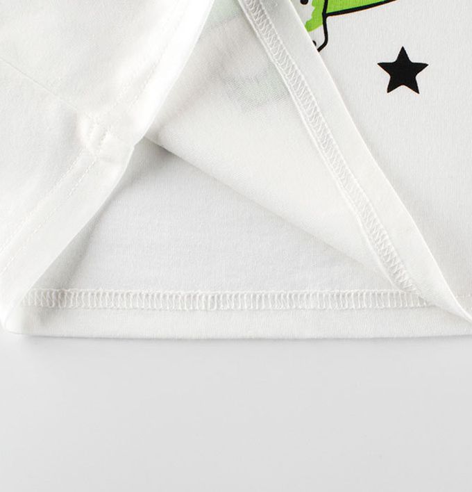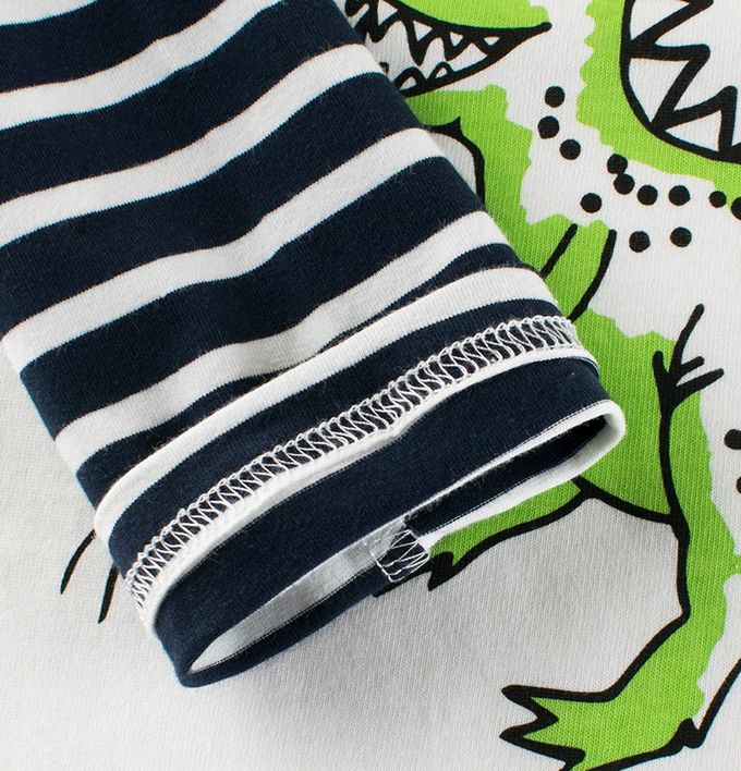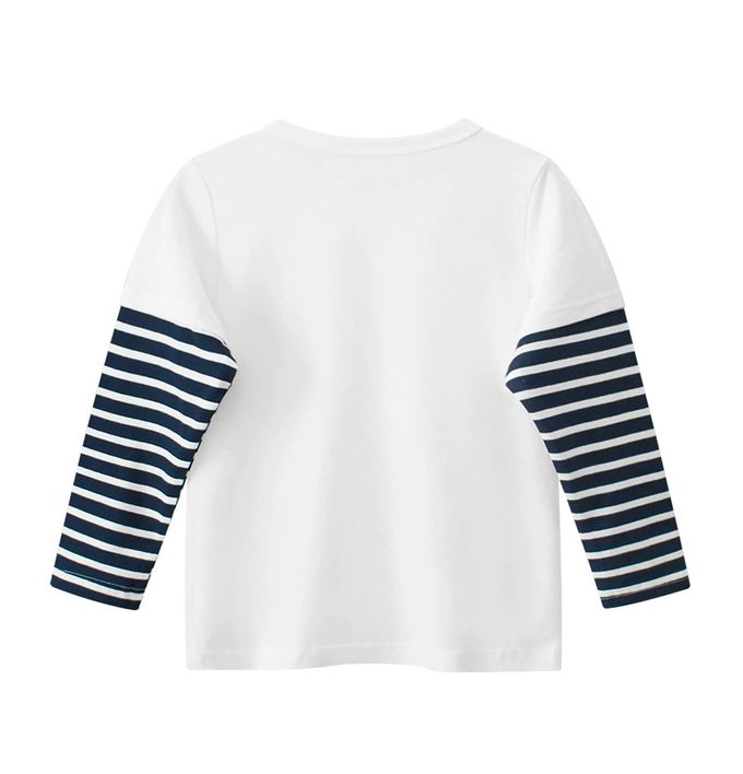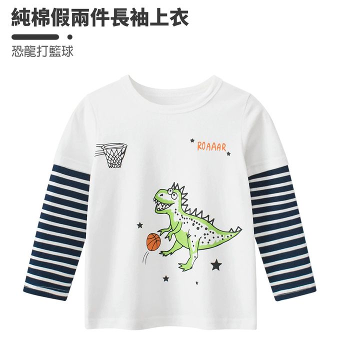 純棉假兩件長袖上衣-恐龍打籃球-米白