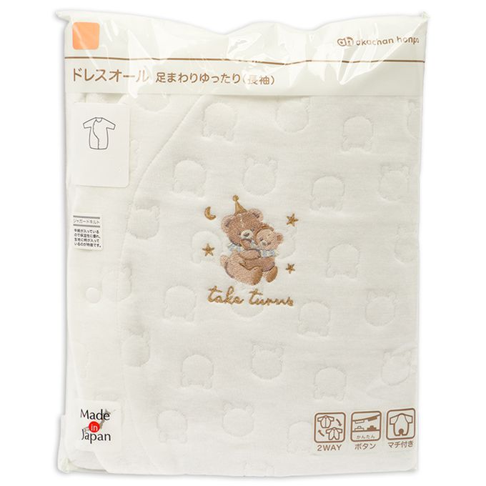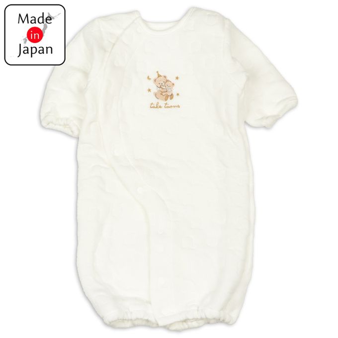 長袖保暖鋪棉連身衣-小熊-米白色 (50~70cm)-日本製
