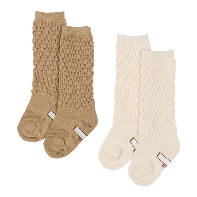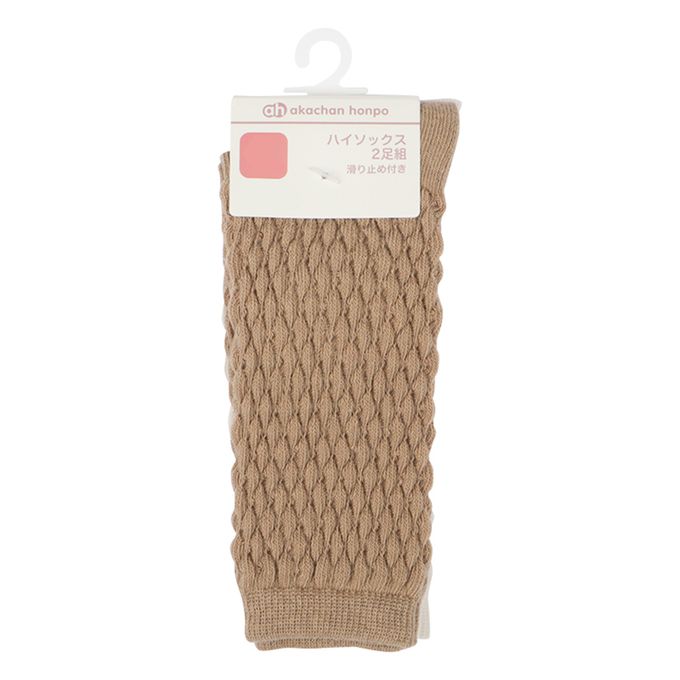 akachan honpo - 長筒襪2雙組-皺褶華夫格-米白色 (9~14cm)