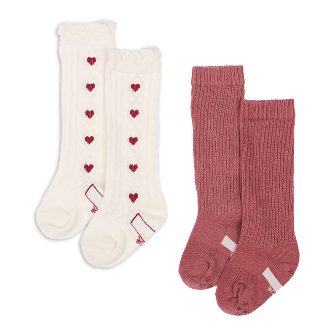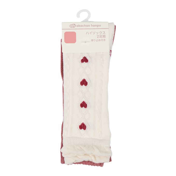 長筒襪2雙組-愛心立體織紋-米白色 (9~14cm)