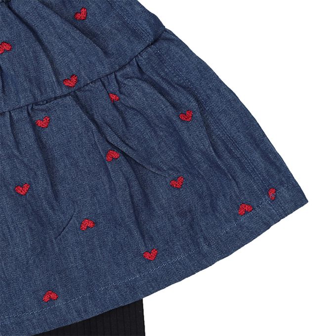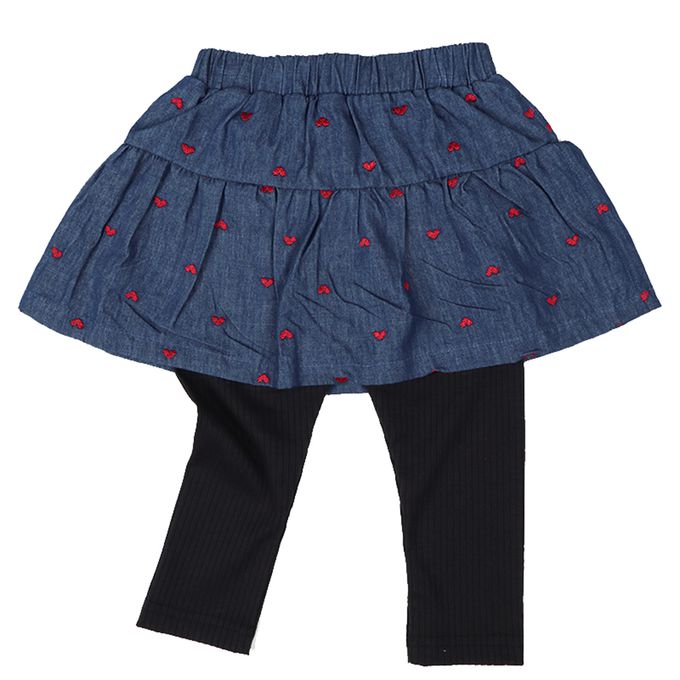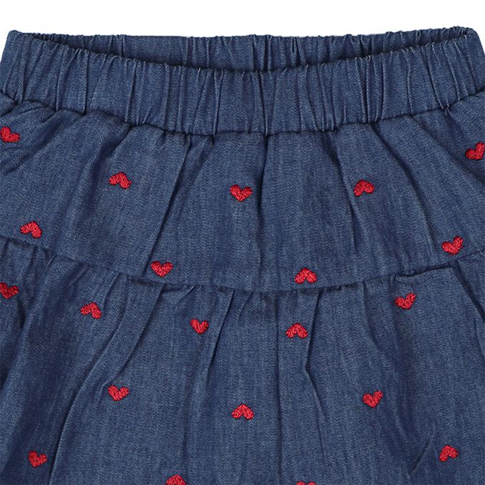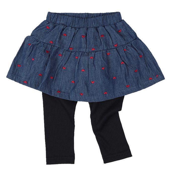 10分牛仔褲裙-刺繡-深藍色