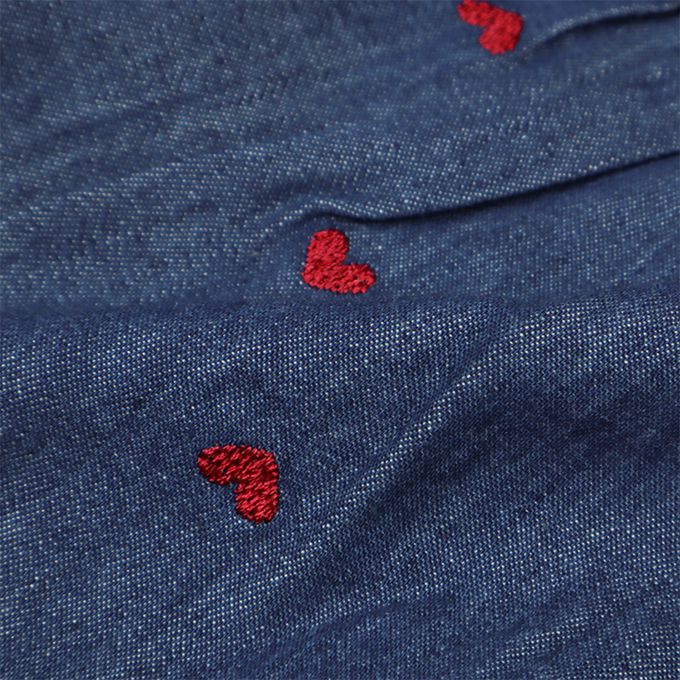 百搭的牛仔布上飾有滿版愛心刺繡,提升質感