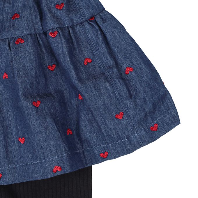 百搭的牛仔布上飾有滿版愛心刺繡,提升質感