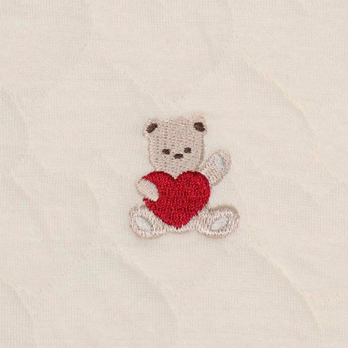 共兩款:象牙白色搭配小熊&愛心刺繡、粉紅色搭配兔子&愛心刺繡,尺寸有 80、90兩種。