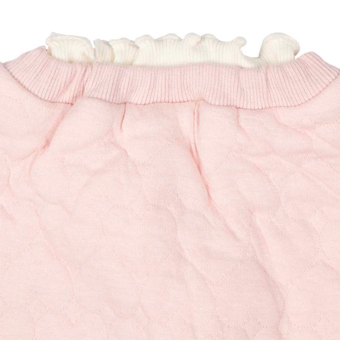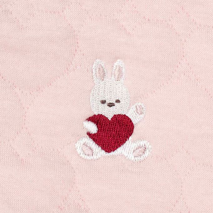 共兩款:象牙白色搭配小熊&愛心刺繡、粉紅色搭配兔子&愛心刺繡,尺寸有 80、90兩種。
