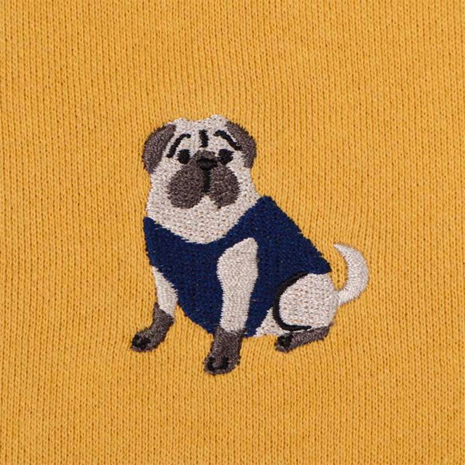 共兩款:灰色搭配老虎圖案、芥末黃搭配巴哥犬圖案。尺寸有80、90兩種。