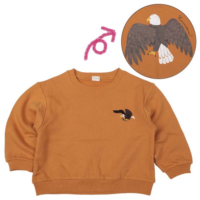共兩款:灰色搭配狐狸圖案、橘色搭配老鷹圖案。尺寸有100、110、120三種。