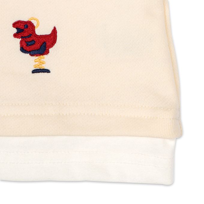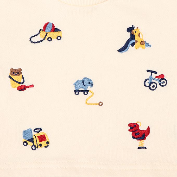 長袖假兩件休閒上衣-刺繡-象牙白色