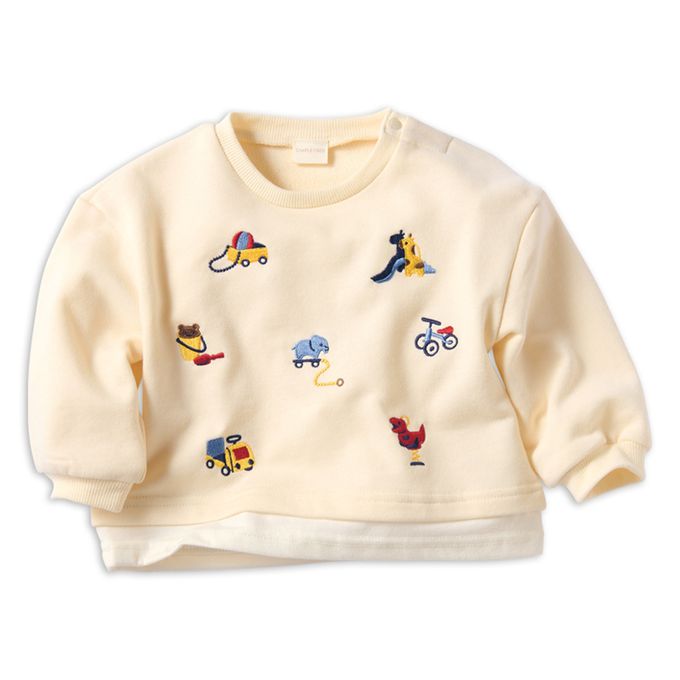 akachan honpo - 長袖假兩件休閒上衣-象牙白色