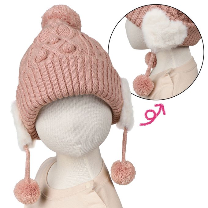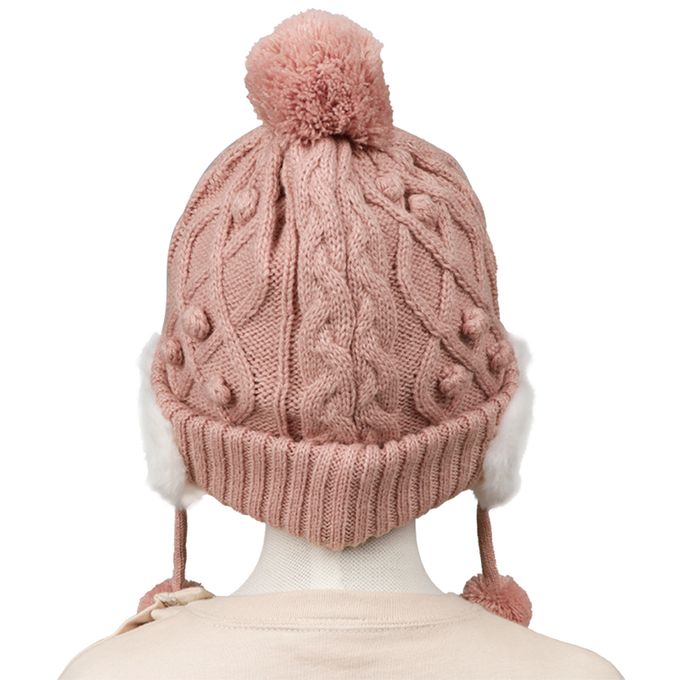 akachan honpo - 針織帽-造型耳罩-咖啡色