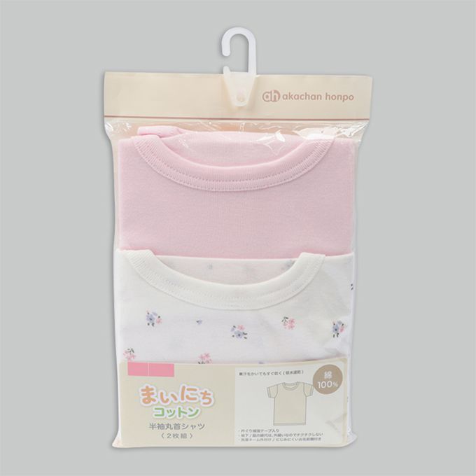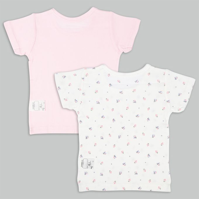 akachan honpo - 短袖圓領上衣2件組-小花-粉紅色