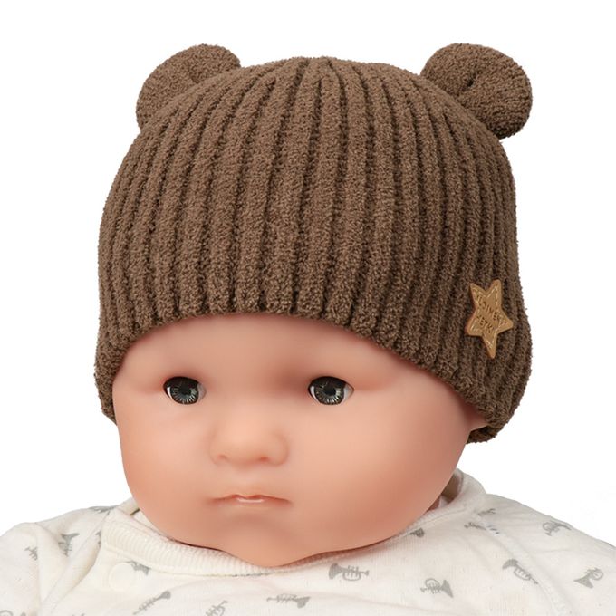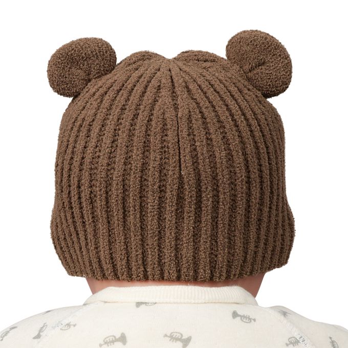嬰幼兒小耳朵針織帽絨毛紗線-咖啡色