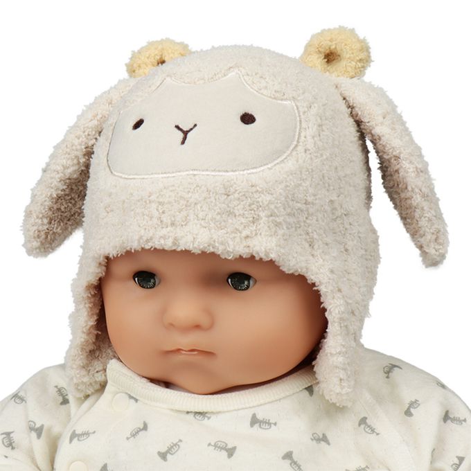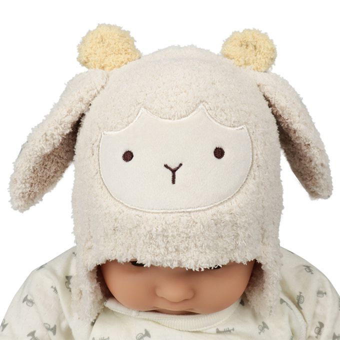 嬰幼兒冬季針織帽-毛茸茸動物-象牙白色