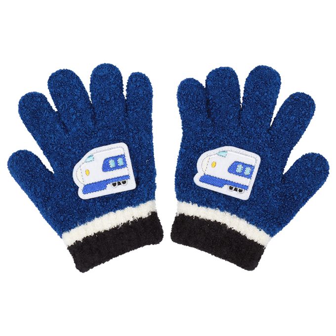 akachan honpo - 5指手套-新幹線繡片-深藍色-日本製