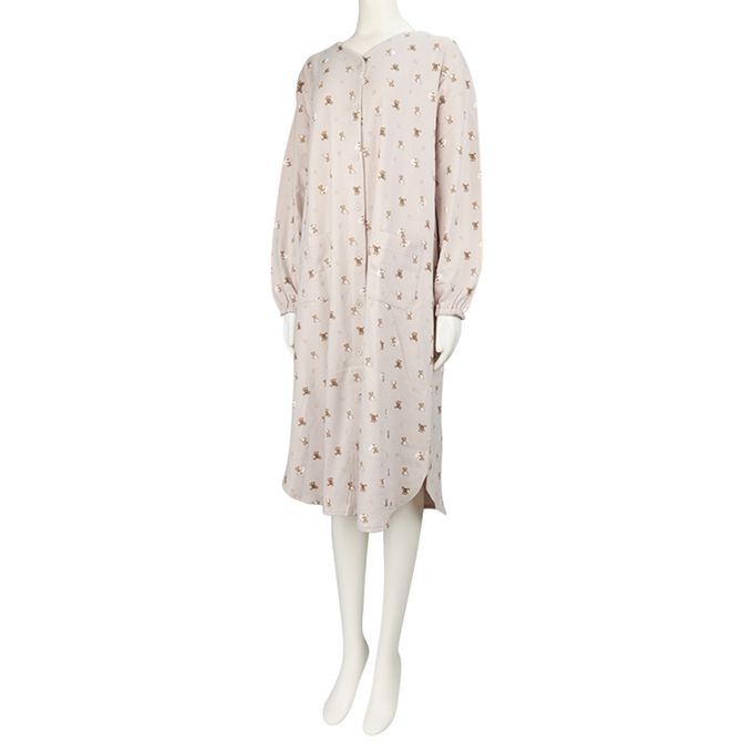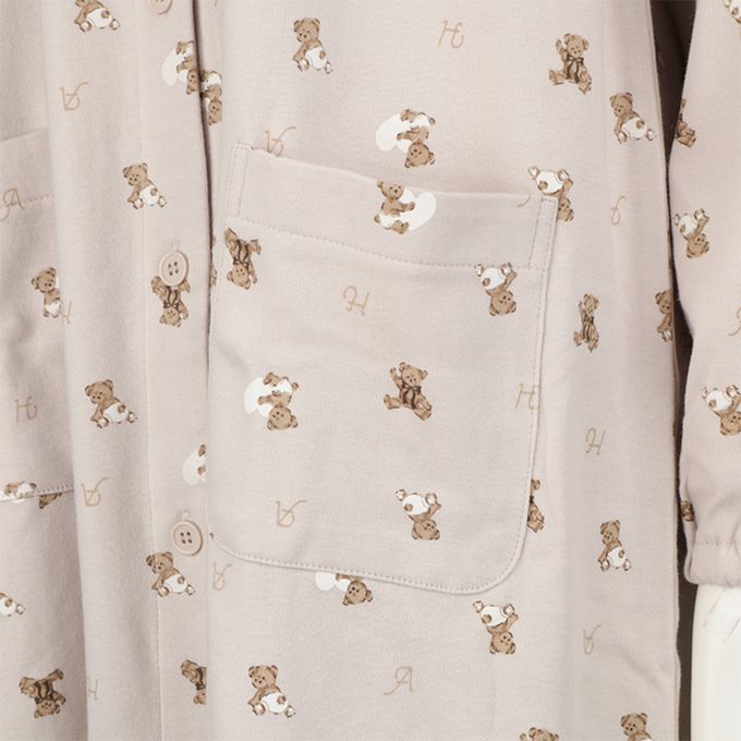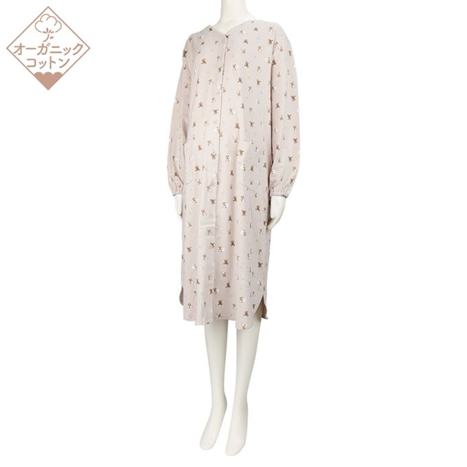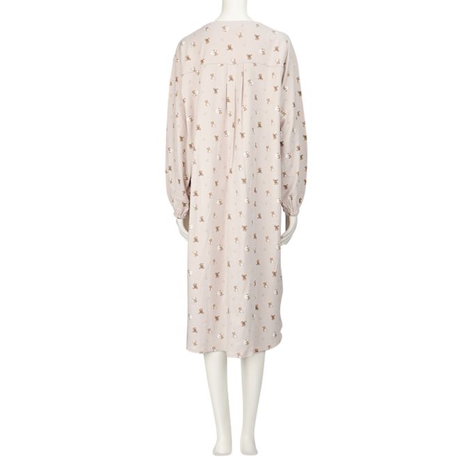 akachan honpo - 長袖有機棉洋裝-小熊-淺卡其色 (M~L)