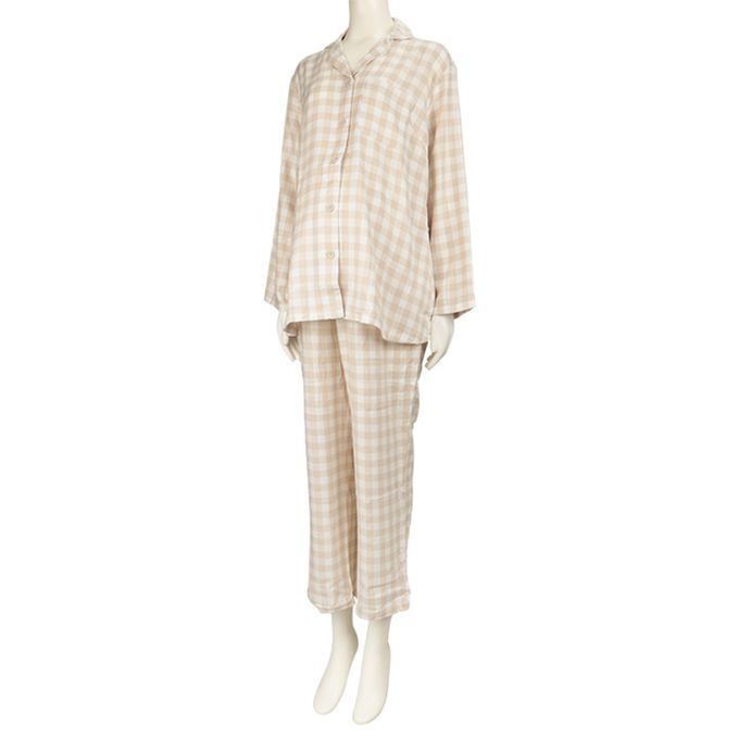詳細尺寸:●尺寸(約・ cm)=[M-L]上衣 衣長67 胸圍108.4 袖長54 褲子 腰圍(最大)110~ 下襠長66 ●適用期間=產前~產後