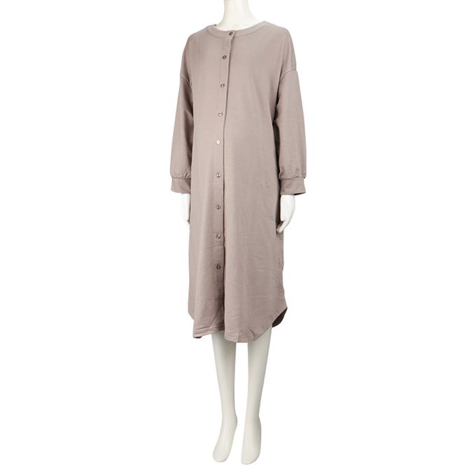 長袖家居洋裝-附下擺按扣-摩卡色 (M~L)