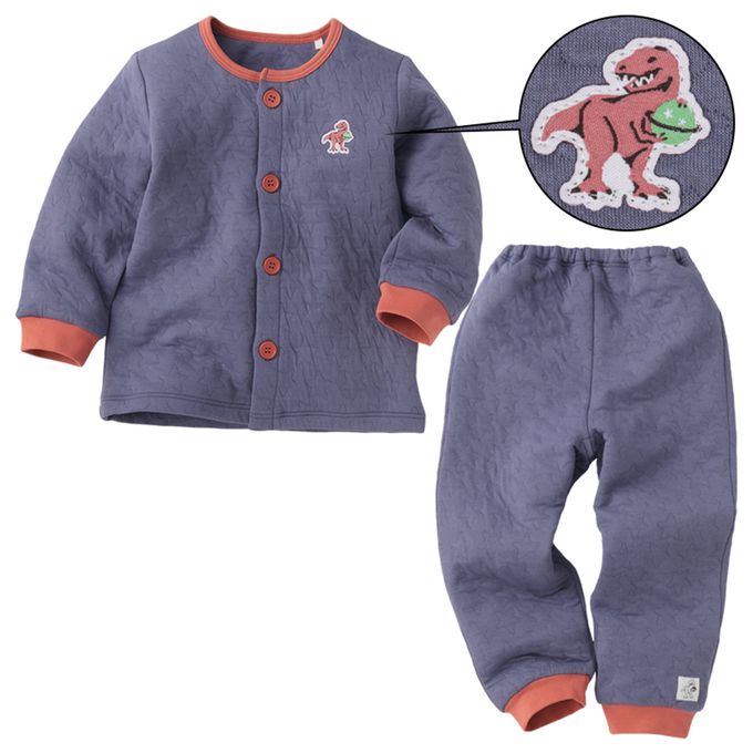 akachan honpo - 長袖鋪棉家居服-側邊按扣 恐龍-淺藍色