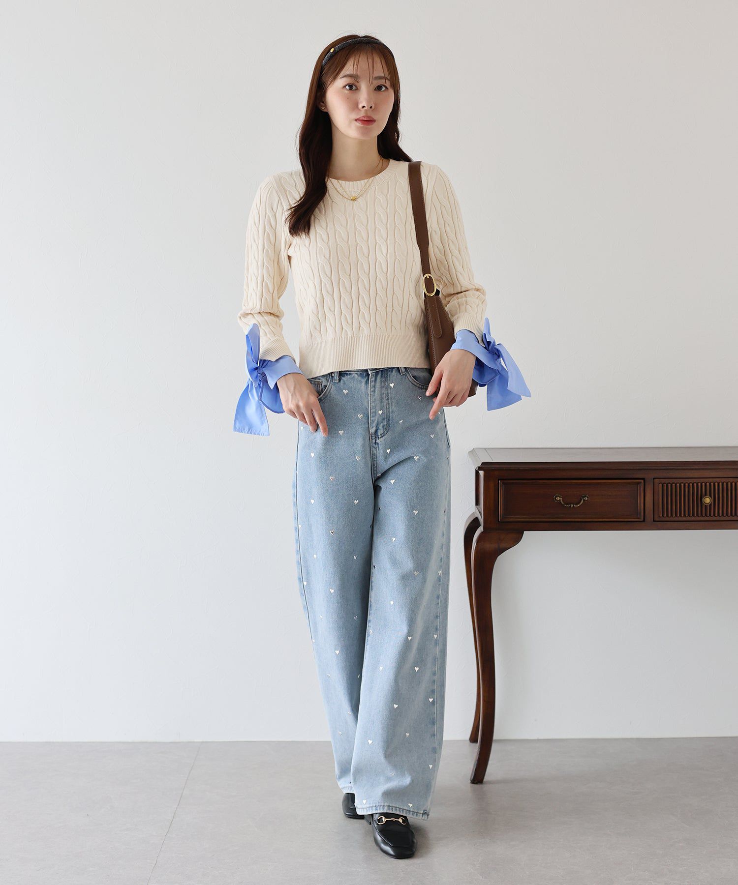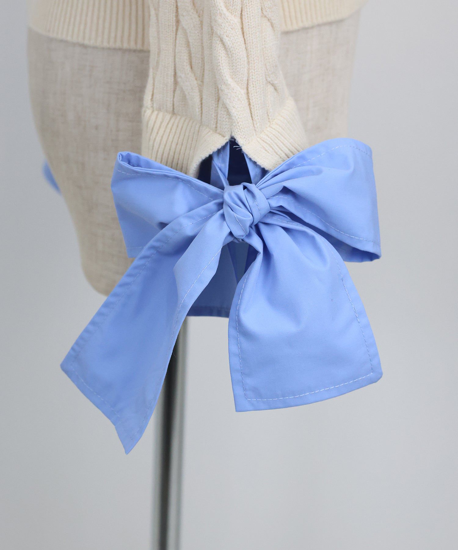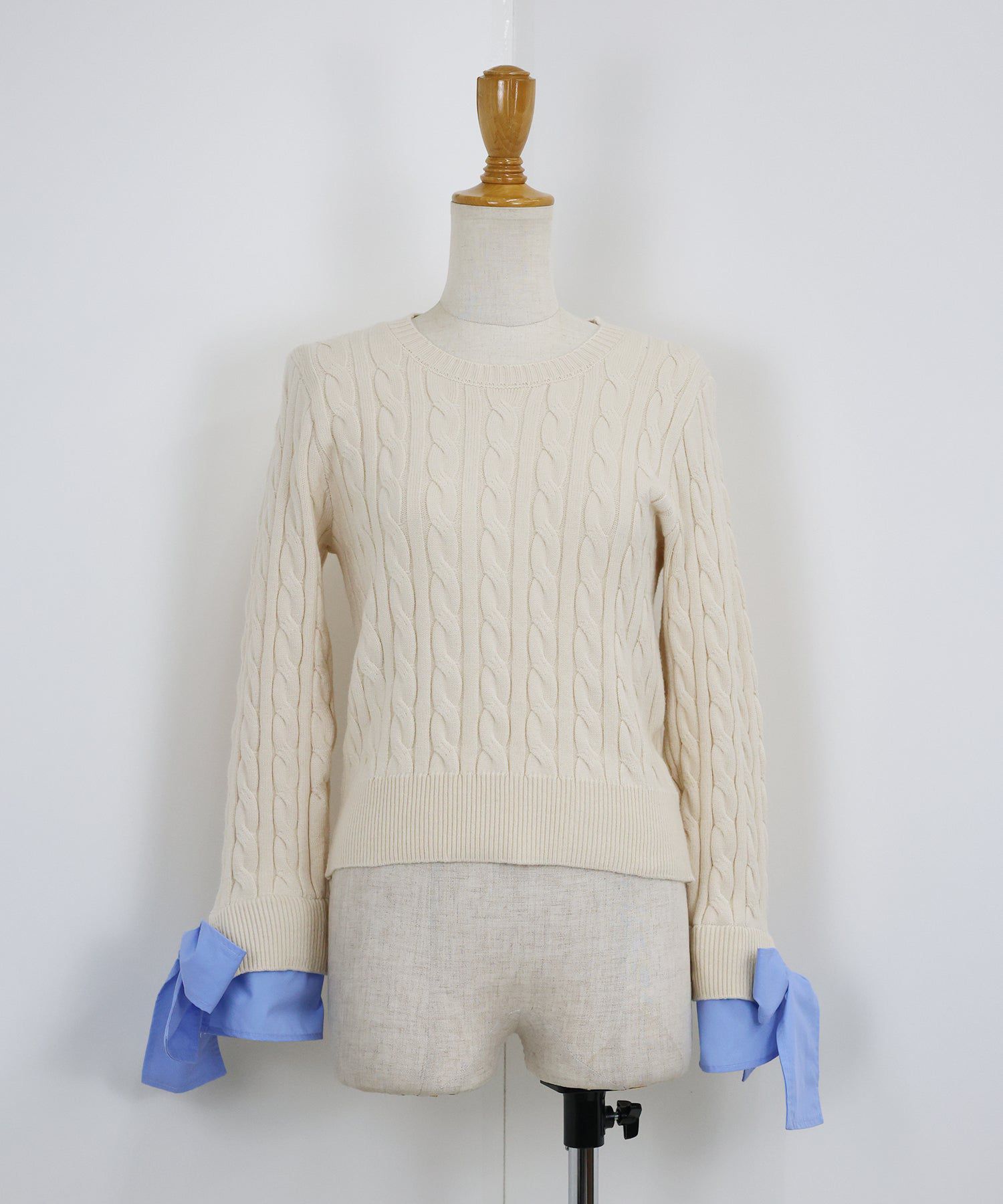 • 品名:亮麗蝴蝶結緞帶袖麻花針織上衣