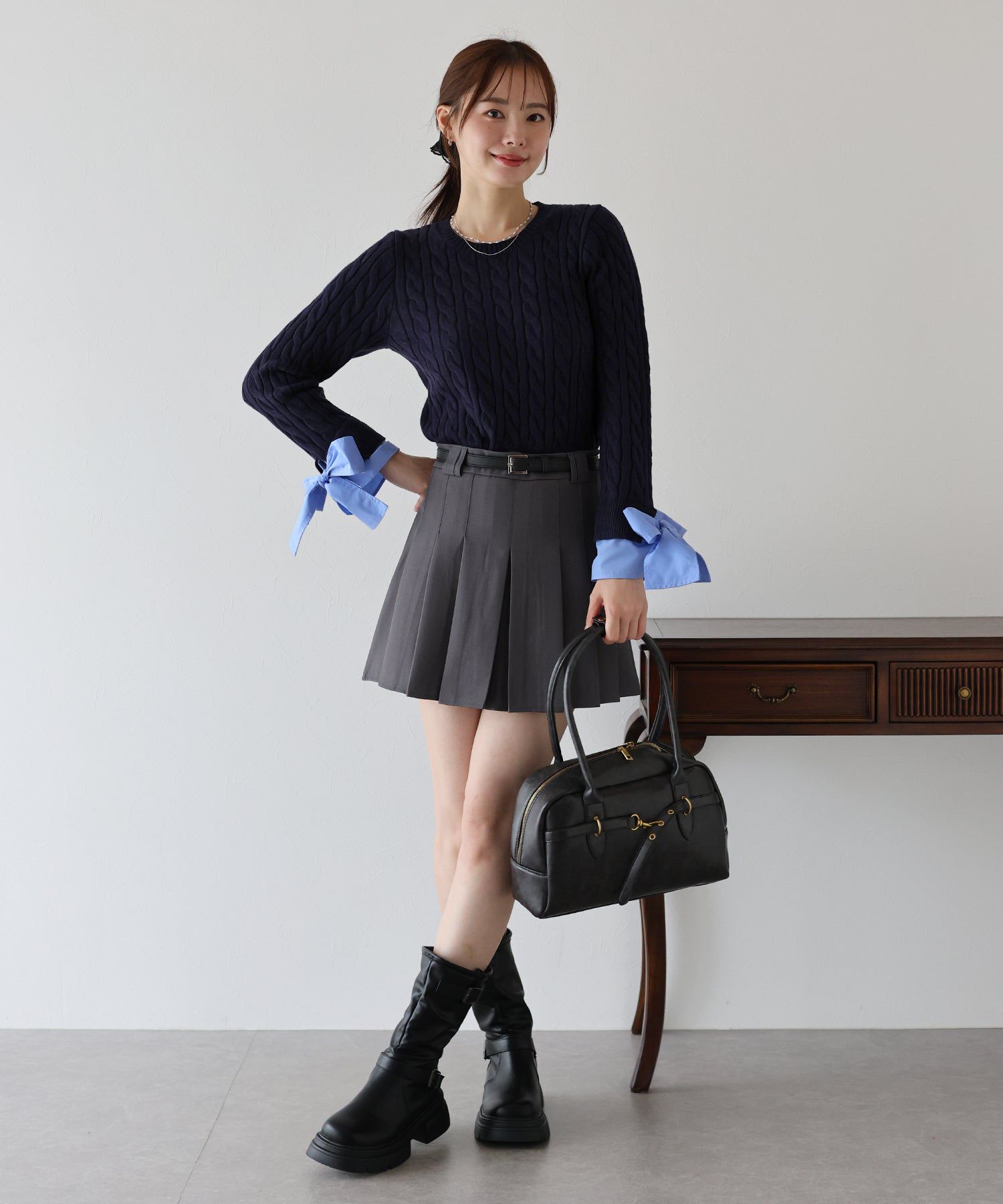 • 針織部分採用沉穩色系,呈現大人可愛風格