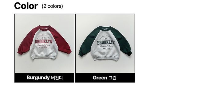韓國南大門童裝 - W.S.B. 內磨毛長袖大學T-布魯克林-燕麥灰X綠