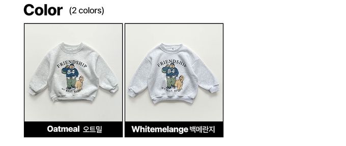韓國南大門童裝 - W.S.B. 內磨毛長袖大學T-友情萬歲-燕麥米灰