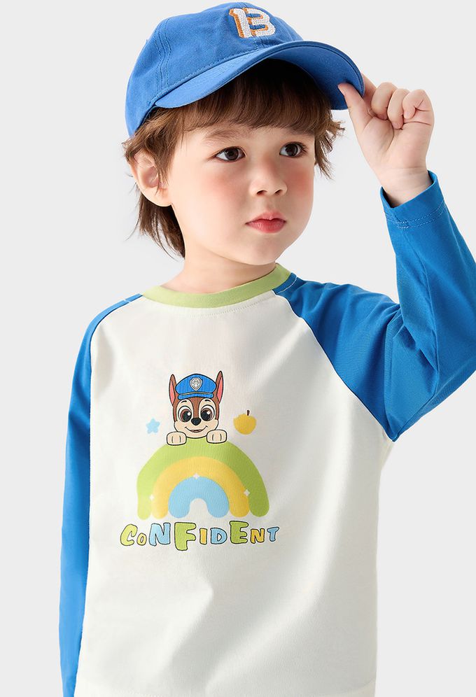 人氣卡通 - 卡通汪汪隊拼色長袖上衣-卡通人物阿奇-藍色