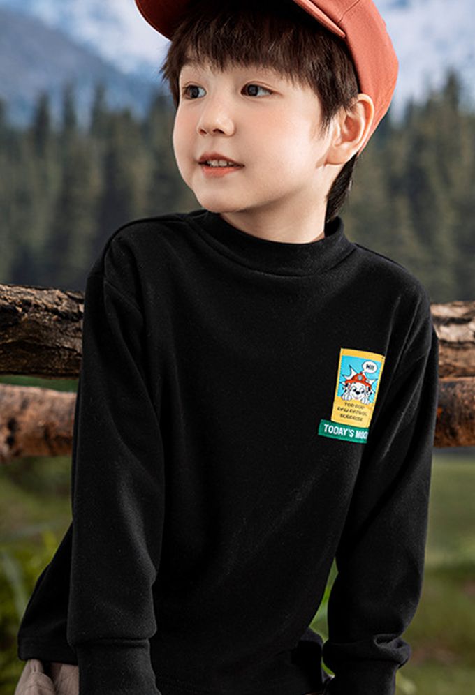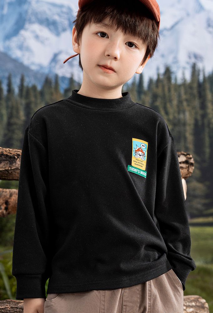 卡通汪汪隊磨毛半高領長袖上衣-卡通人物毛毛-黑色