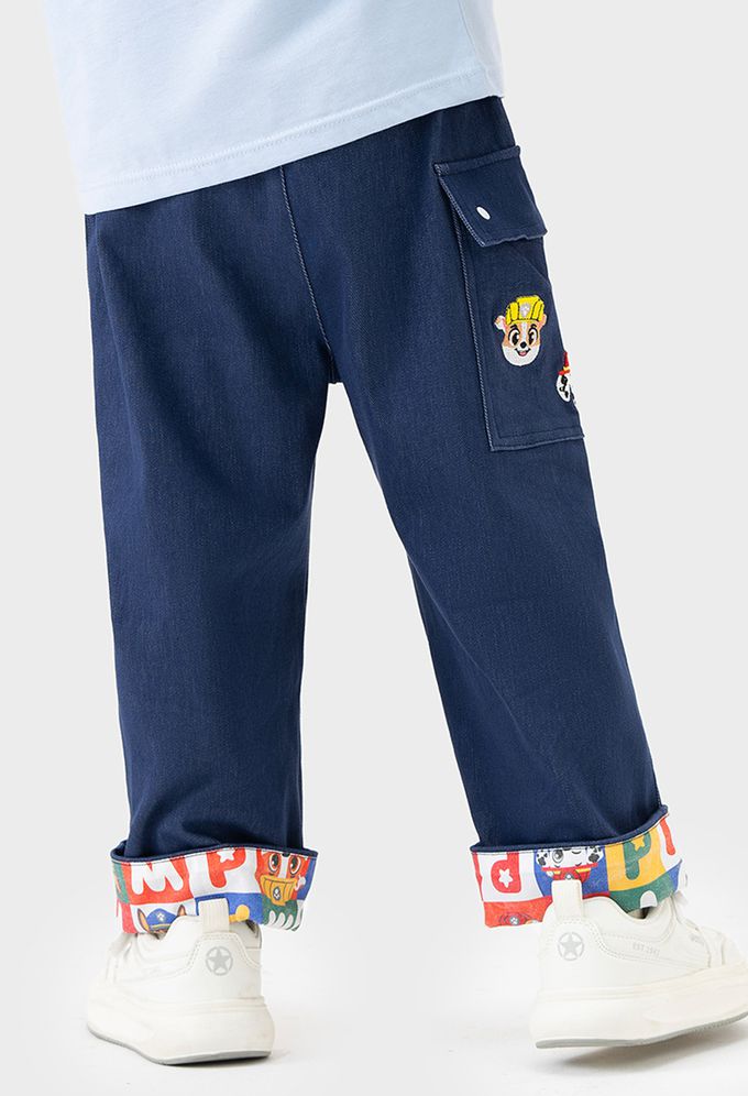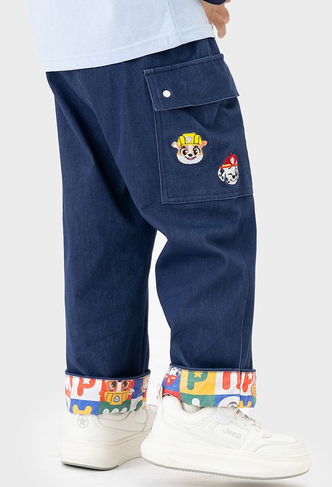 卡通汪汪隊大口袋直筒牛仔褲-刺繡-藍色