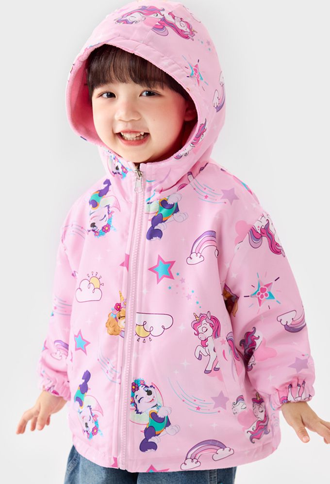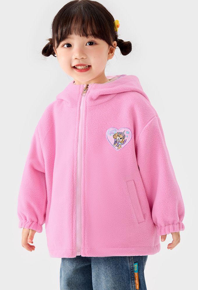 卡通汪汪隊雙面穿防風防水外套-連帽加絨-粉色