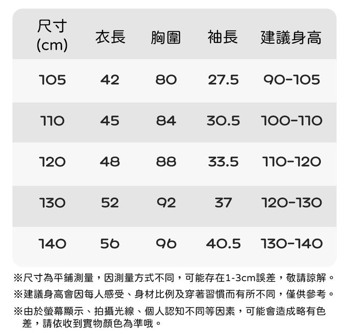 105cm、110cm、120cm、130cm、140cm