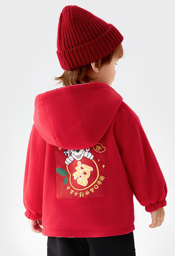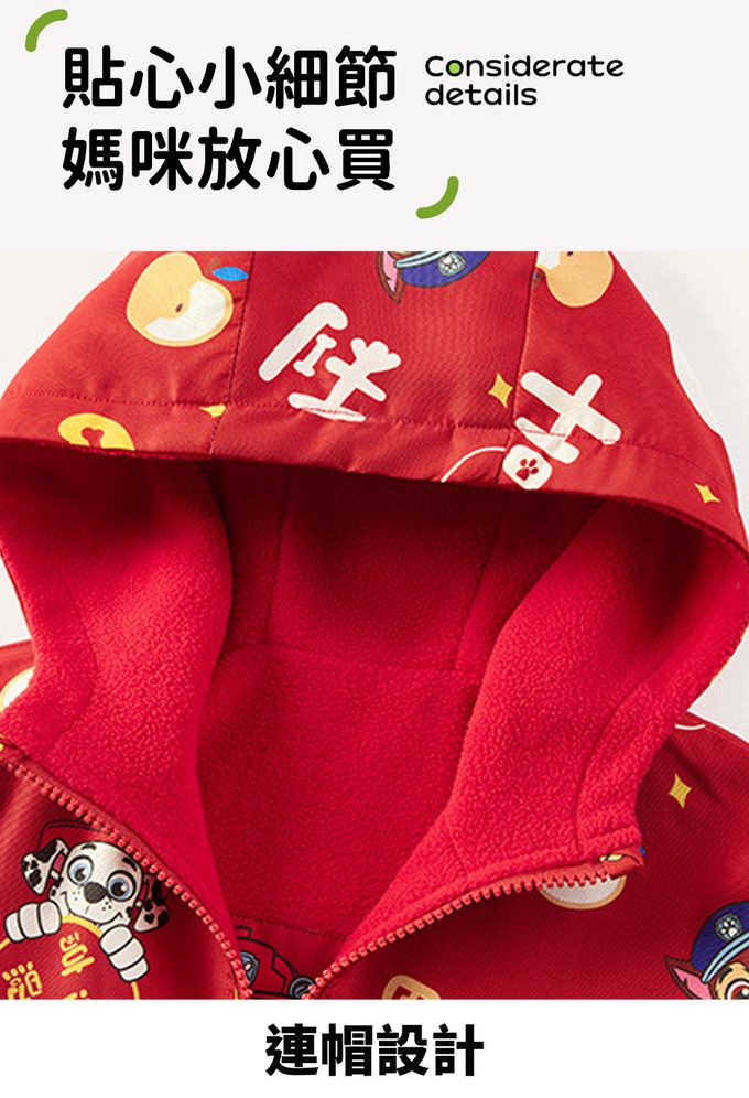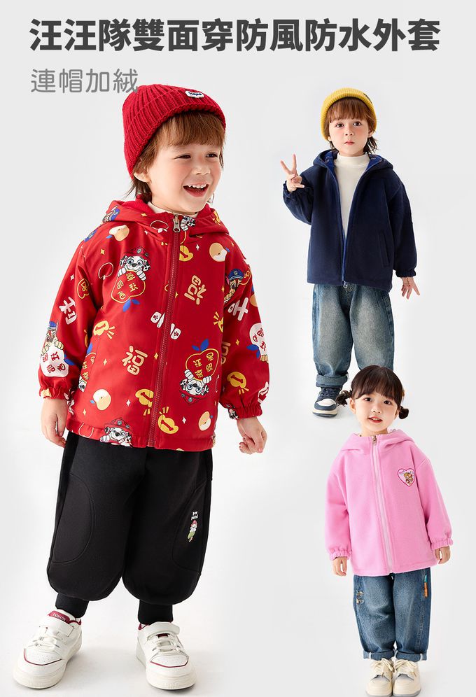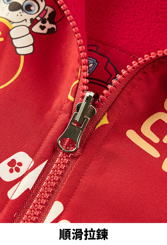 卡通汪汪隊雙面穿防風防水外套-連帽加絨-紅色