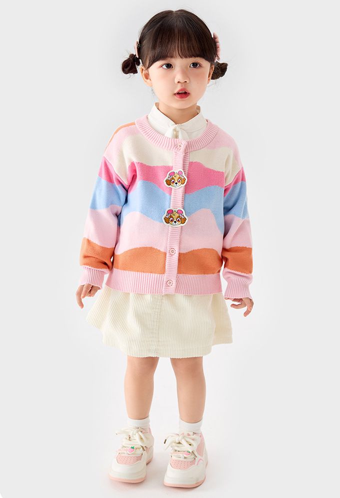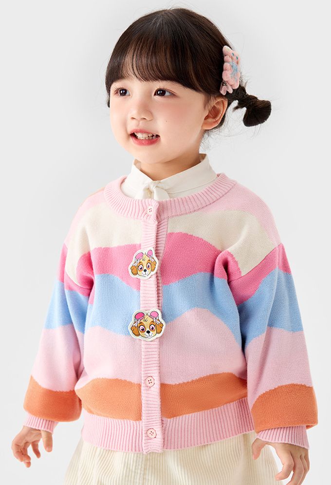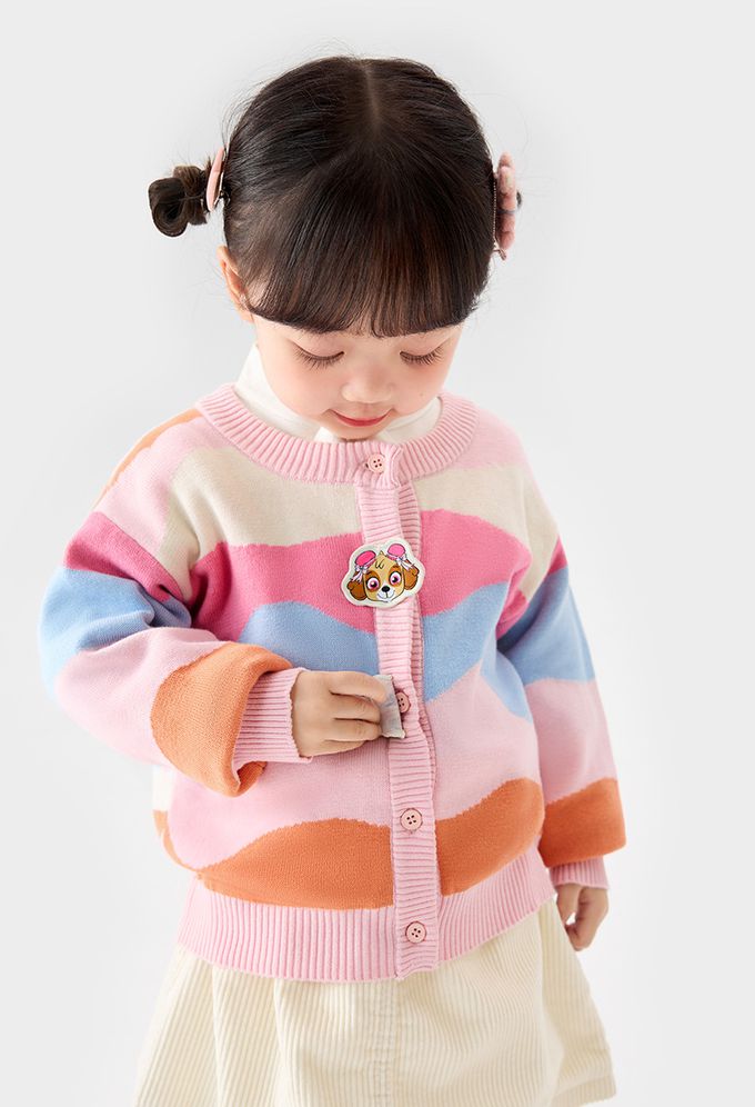 人氣卡通 - 卡通汪汪隊純棉立體徽章針織外套-卡通人物天天-拼色粉