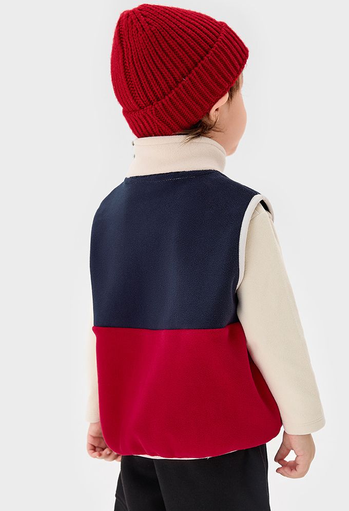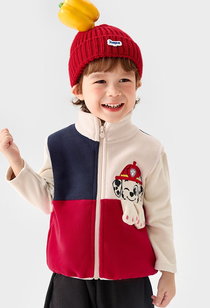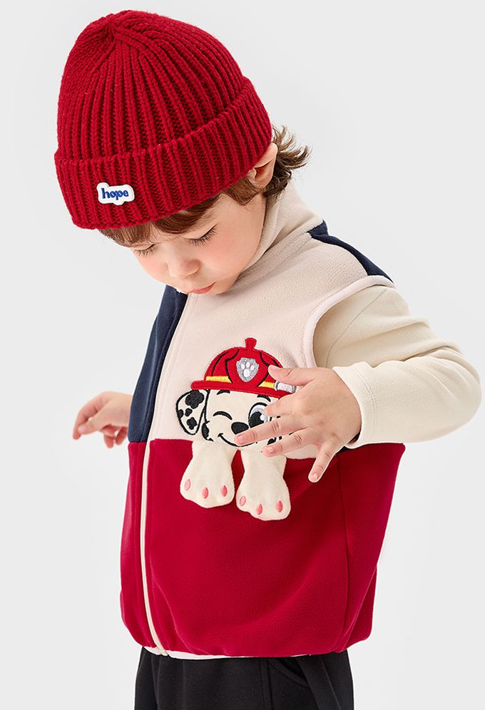 卡通汪汪隊立體造型加絨高領背心-卡通人物毛毛-拼色紅