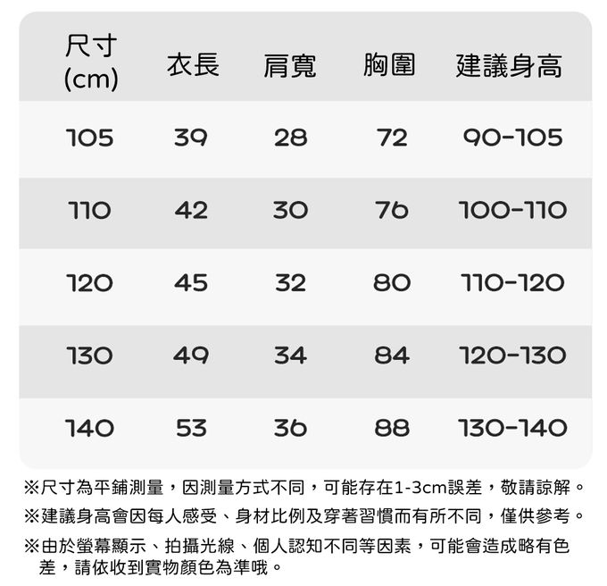 105cm、110cm、120cm、130cm、140cm
