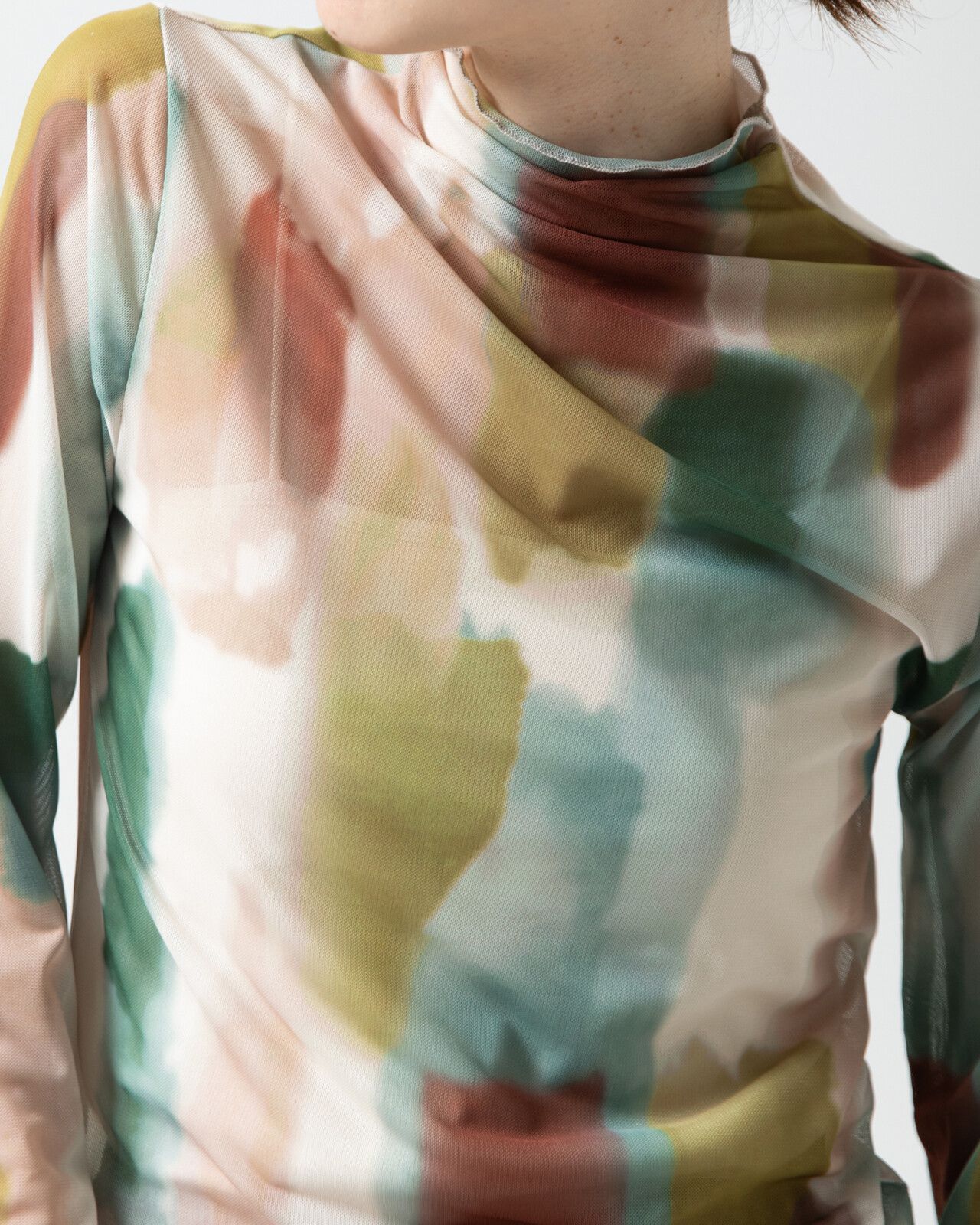 設計特色全身水彩藝術感印花,彷彿穿上了一幅畫作般華麗,流動的色彩讓臉周明亮有神。