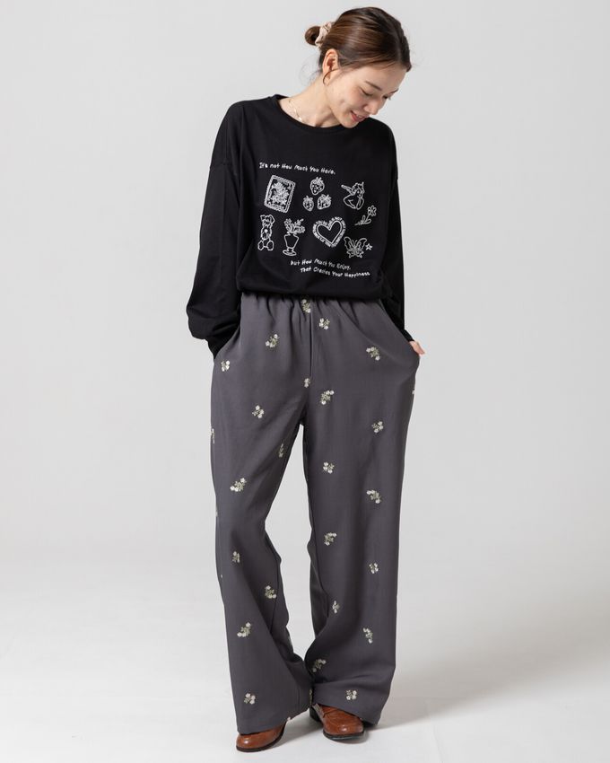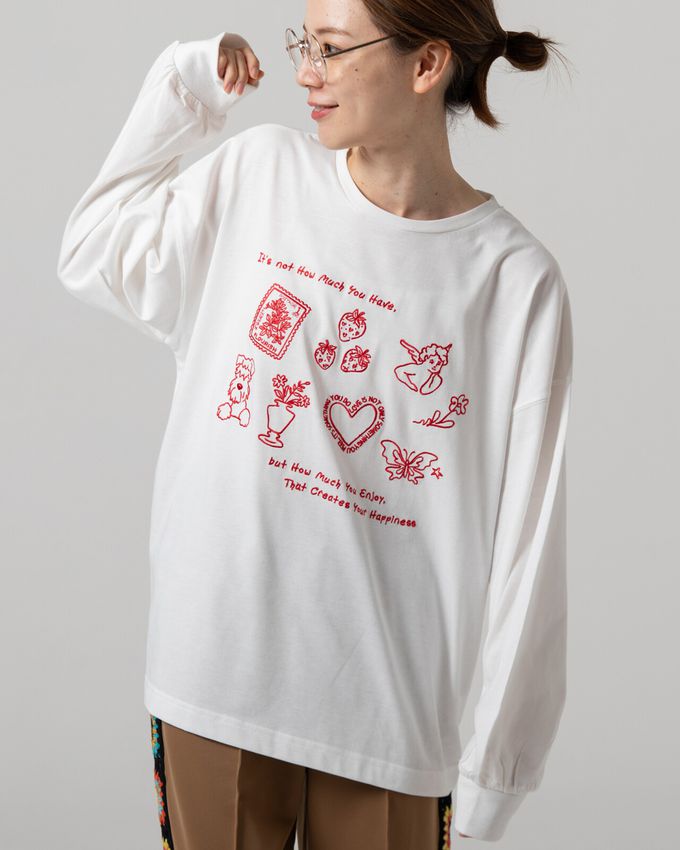 這款長袖T恤以宛如塗鴉般的可愛插畫點綴,呈現獨特個性。童趣感十足的插畫透過精緻刺繡呈現,相較於印花更具立體感與溫暖質感。寬鬆的大版型兼具時尚感,穿著舒適且不挑身形。搭配簡單下裝,即可展現時尚。