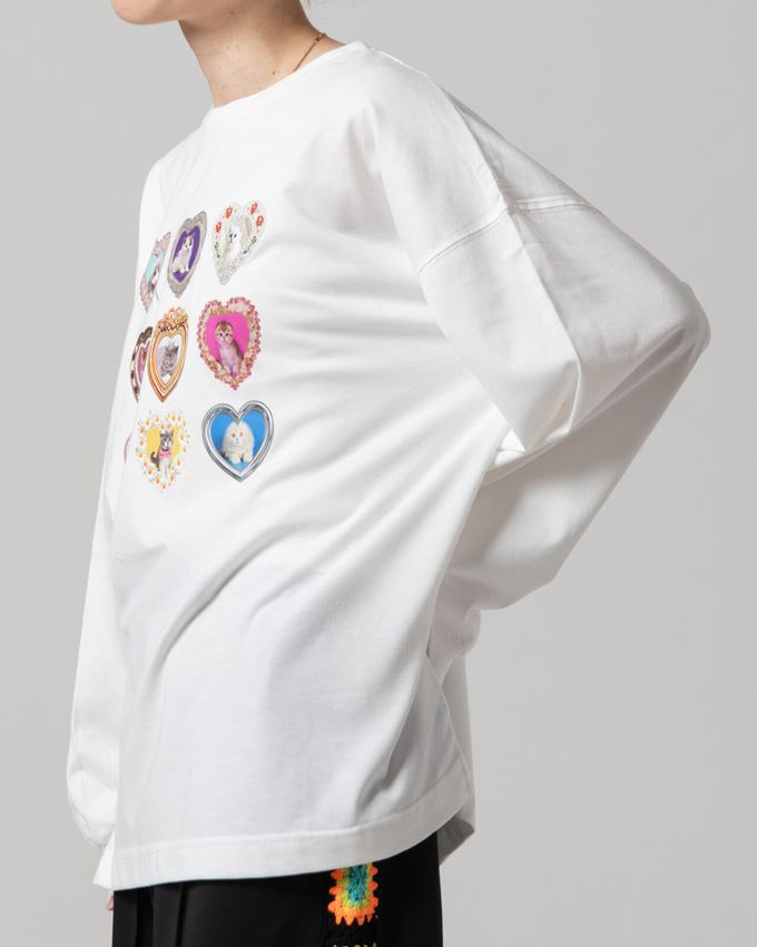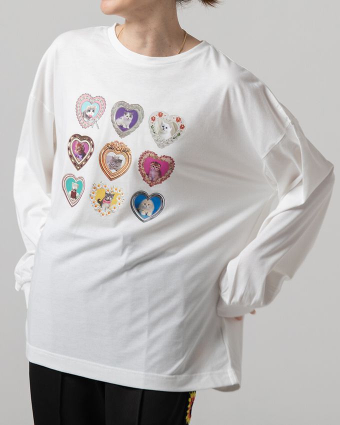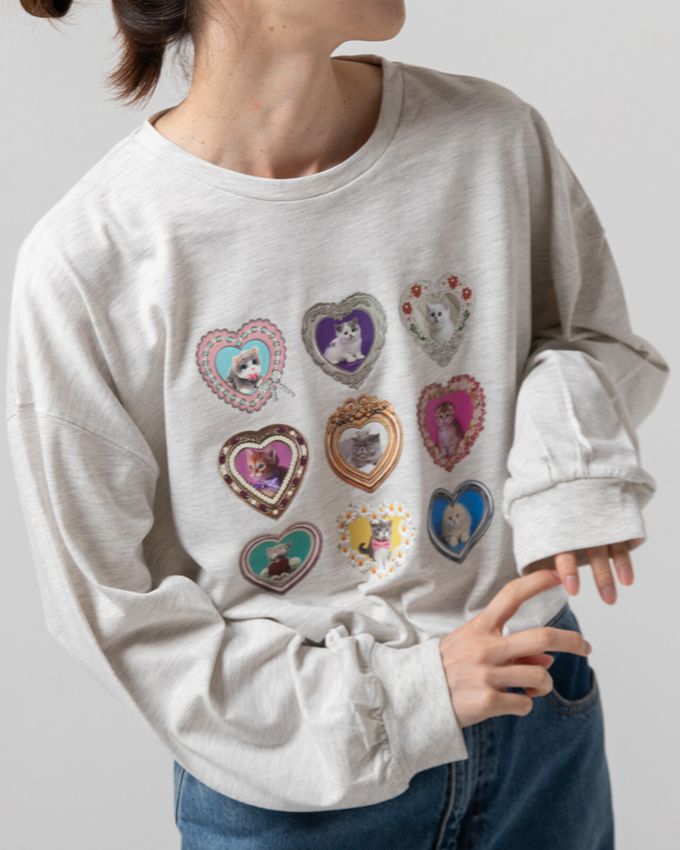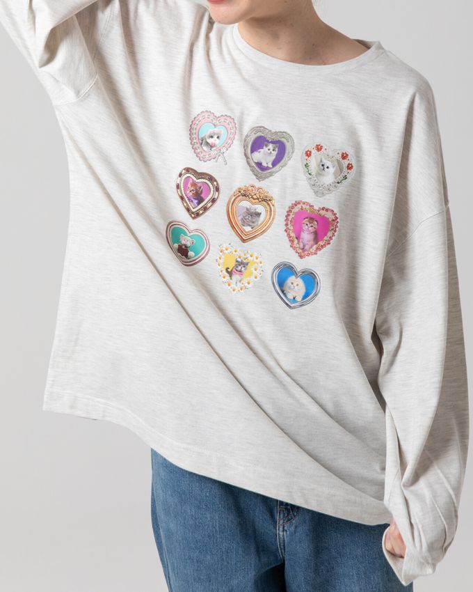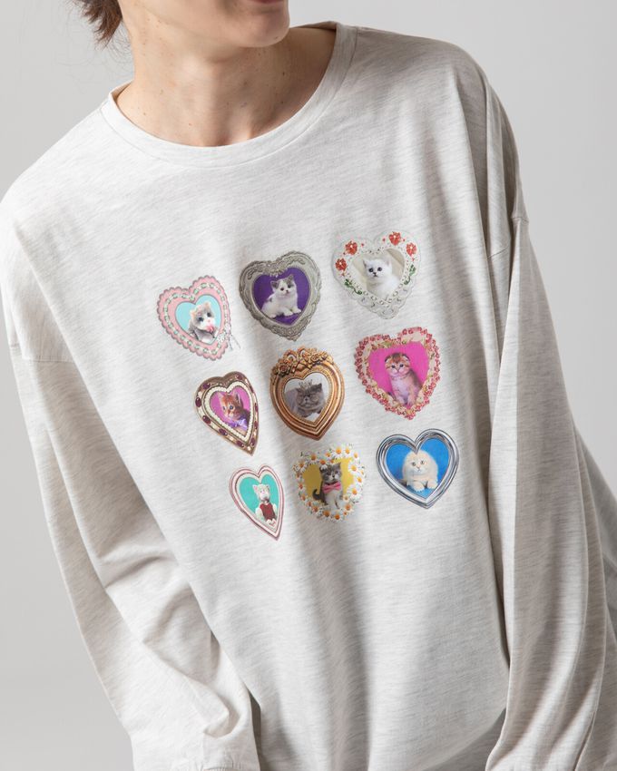 這款長袖T恤以各式框架設計搭配可愛貓咪圖案,吸睛又趣味十足。