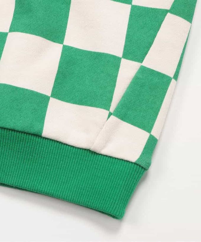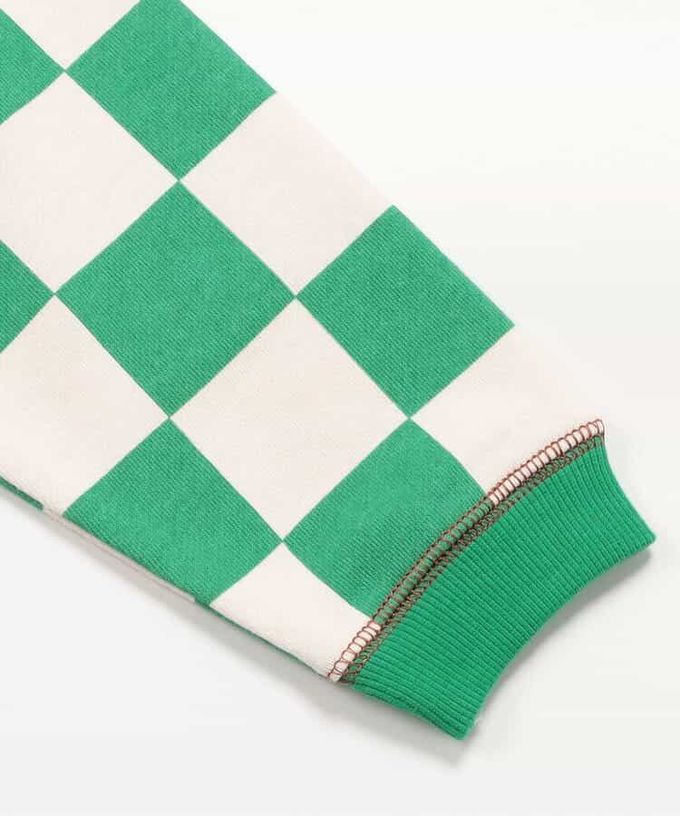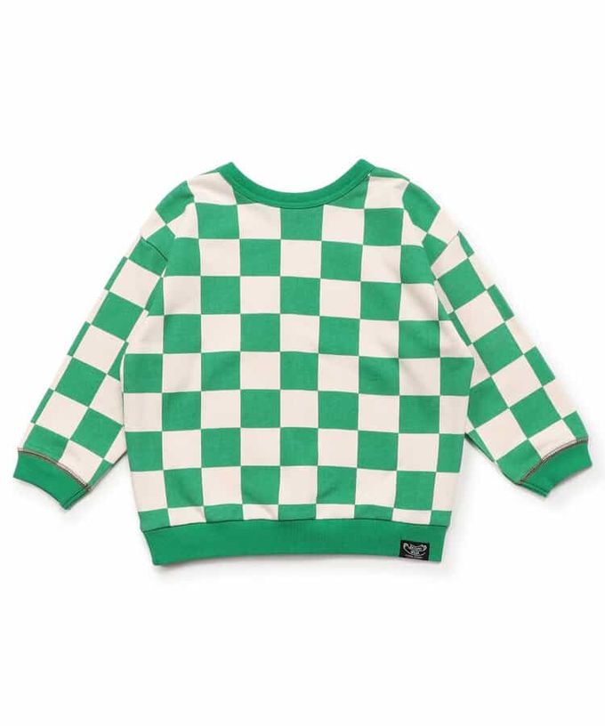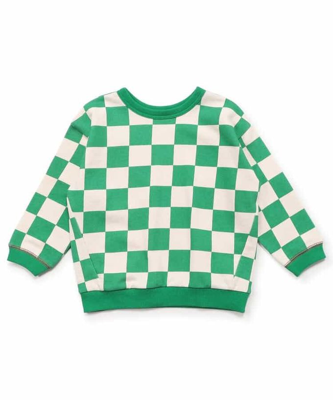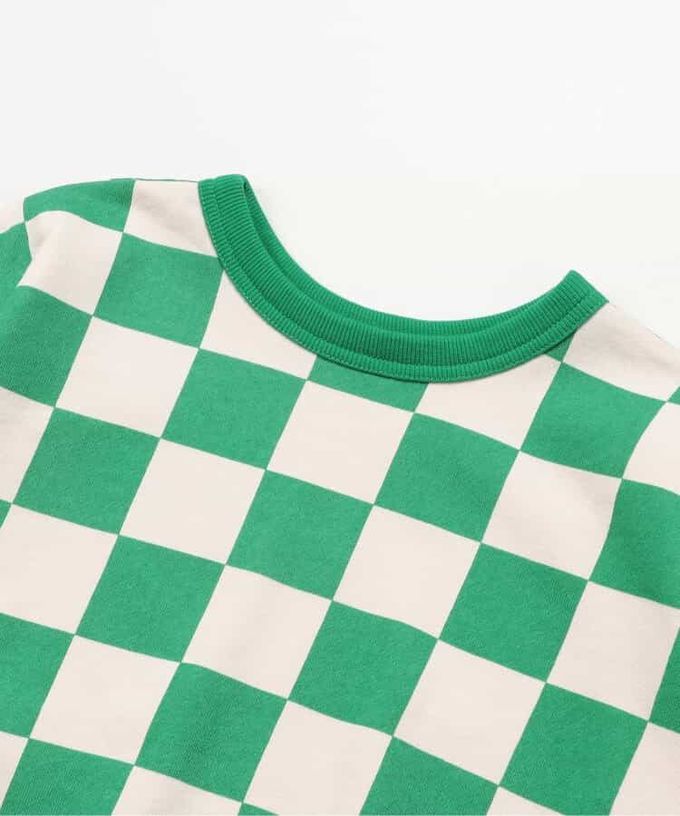 日本 BREEZE - 正反OK!前後兩穿縮口長袖上衣-格子-綠X白