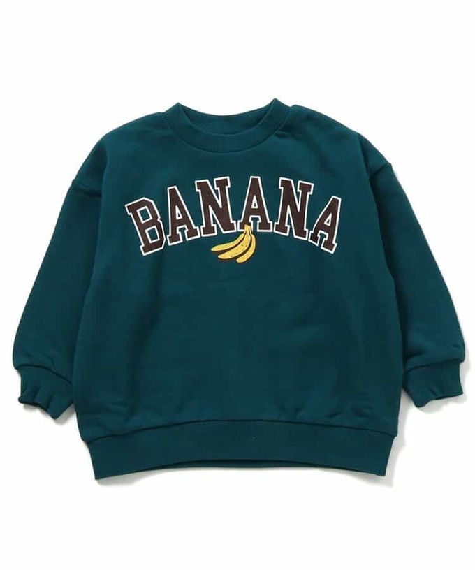 日本 BREEZE - 學院風印花縮口長袖上衣-香蕉-綠