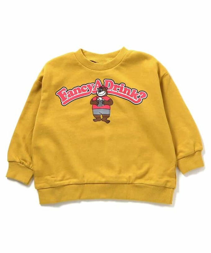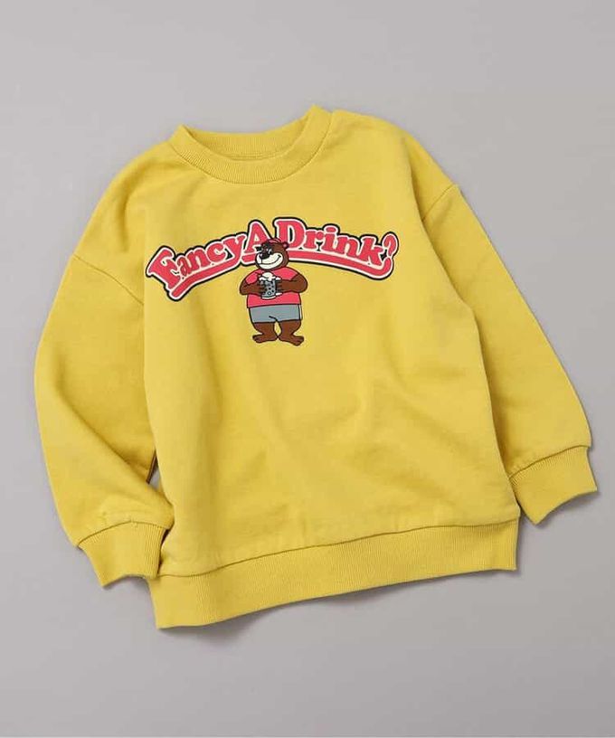 日本 BREEZE - 學院風印花縮口長袖上衣-熊熊-芥黃