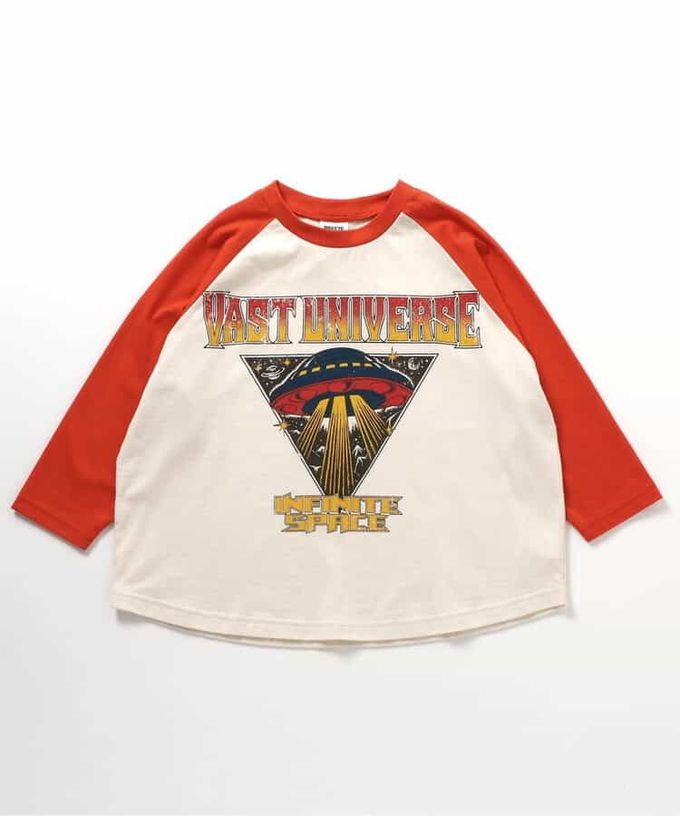 日本 BREEZE - 帥氣美式風格長袖上衣-幽浮-紅X白